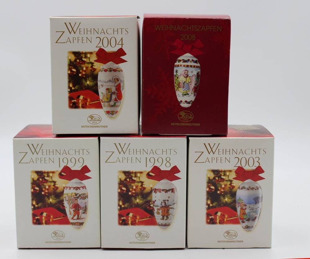 5x Weihnachts-Zapfen, Hutschenreuther, orig. Kartons, 1998, 1999, 2003, 2004 u. 2008. [1]
