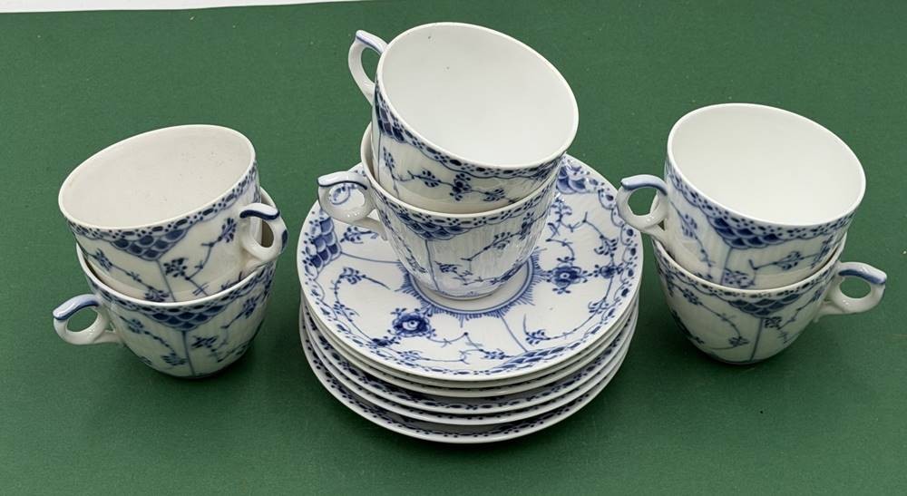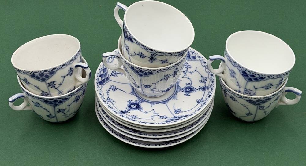 6 Kaffeetassen mit U.T. "Royal Copenhagen" Halbspitze