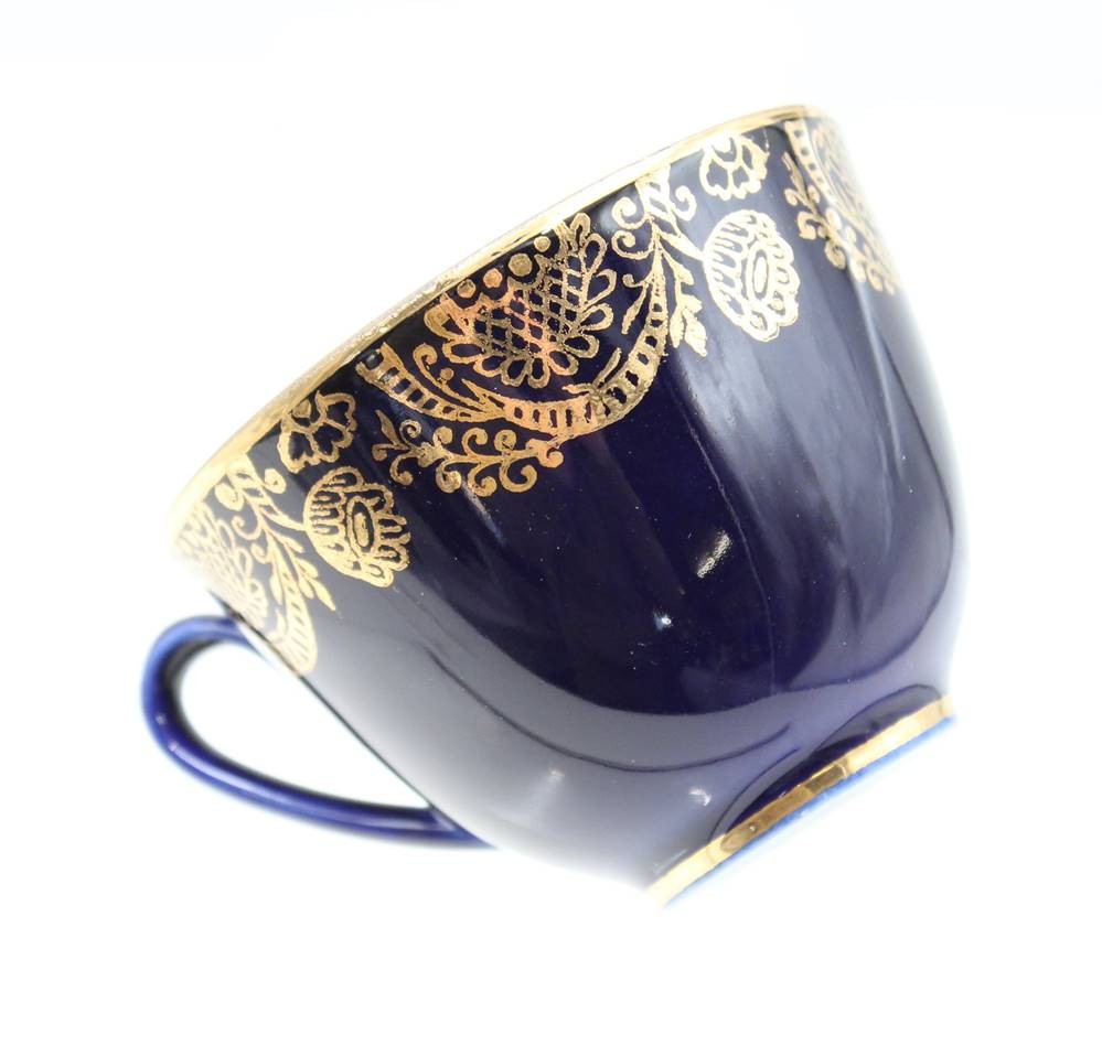 6x Kaffeetassen, Lomonossow, Kobalt mit Goldzier, ca. H-7cm
