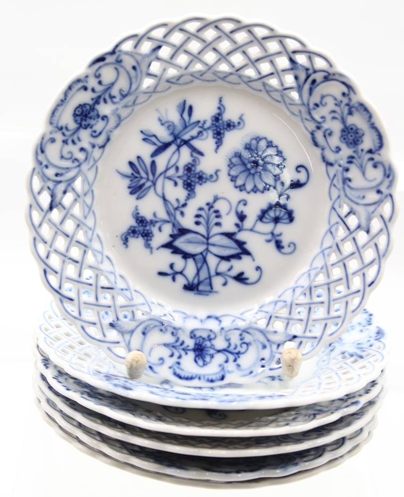 6x kl. Durchbruchteller, Stadt Meissen, Zwiebelmuster, je D-15cm [1]