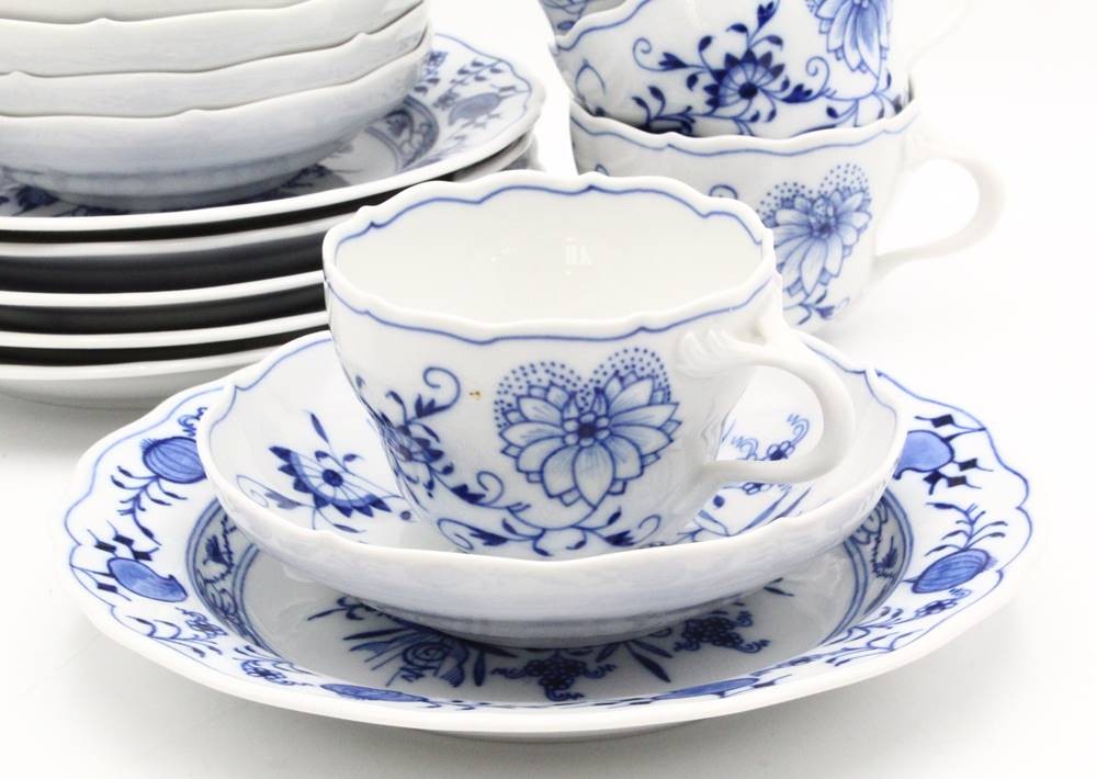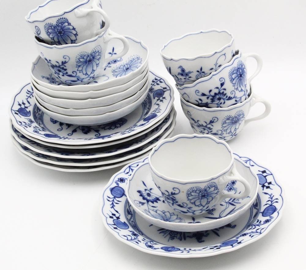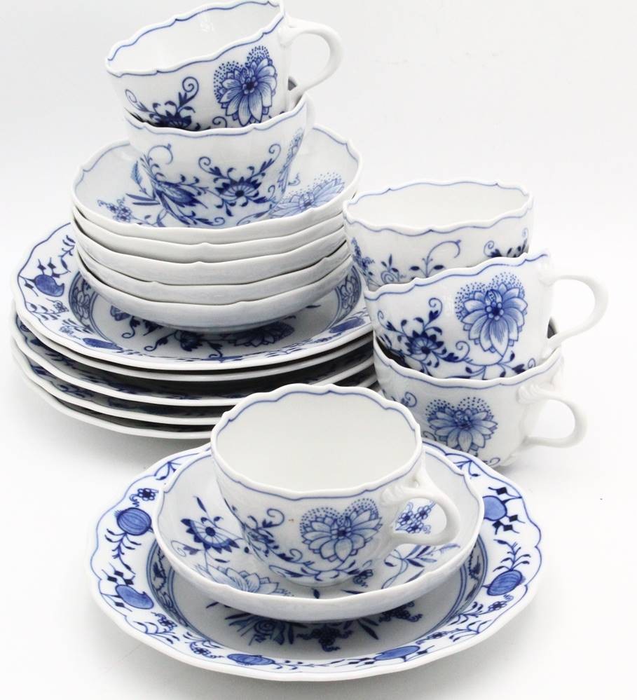 6x komplette Gedecke "Meissen" Zwiebelmuster, 18 Teile, wohl alles 2.Wahl [1]