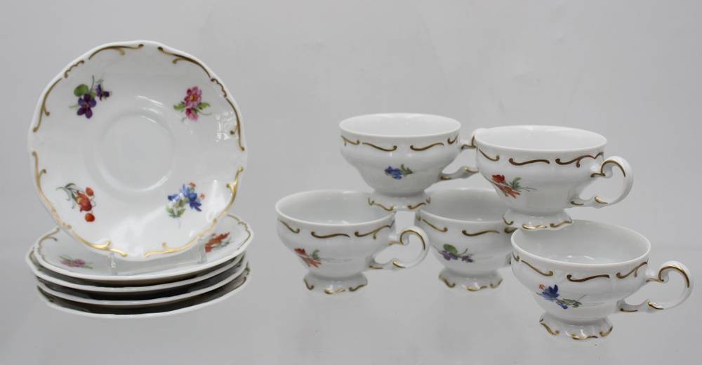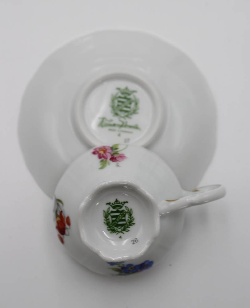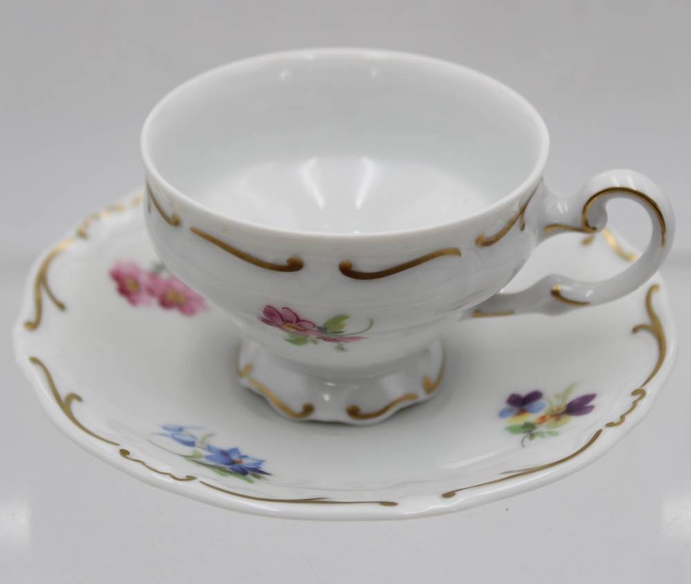6x Mokka-Tassen, Weimar, Blumen und Golddekor, Tassen ca. H-4,5cm [1]