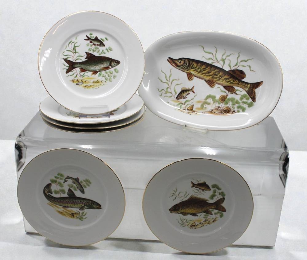 7tlg. Fischservice, Winterling, 70/80er Jahre, ovale Platte und 6 flache Teller [1]