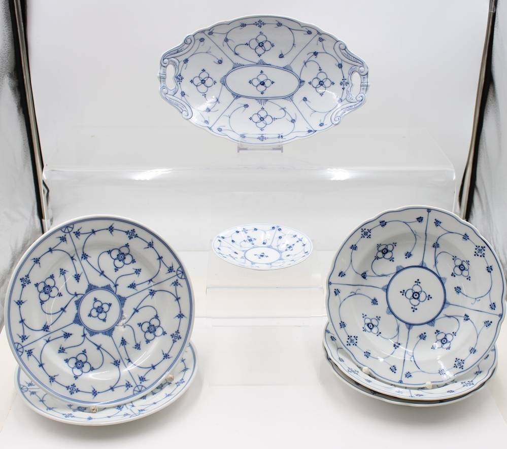 7tlg. Konvolut Strohblume, untersch. Manufakturen, ovale Schale mit Chip