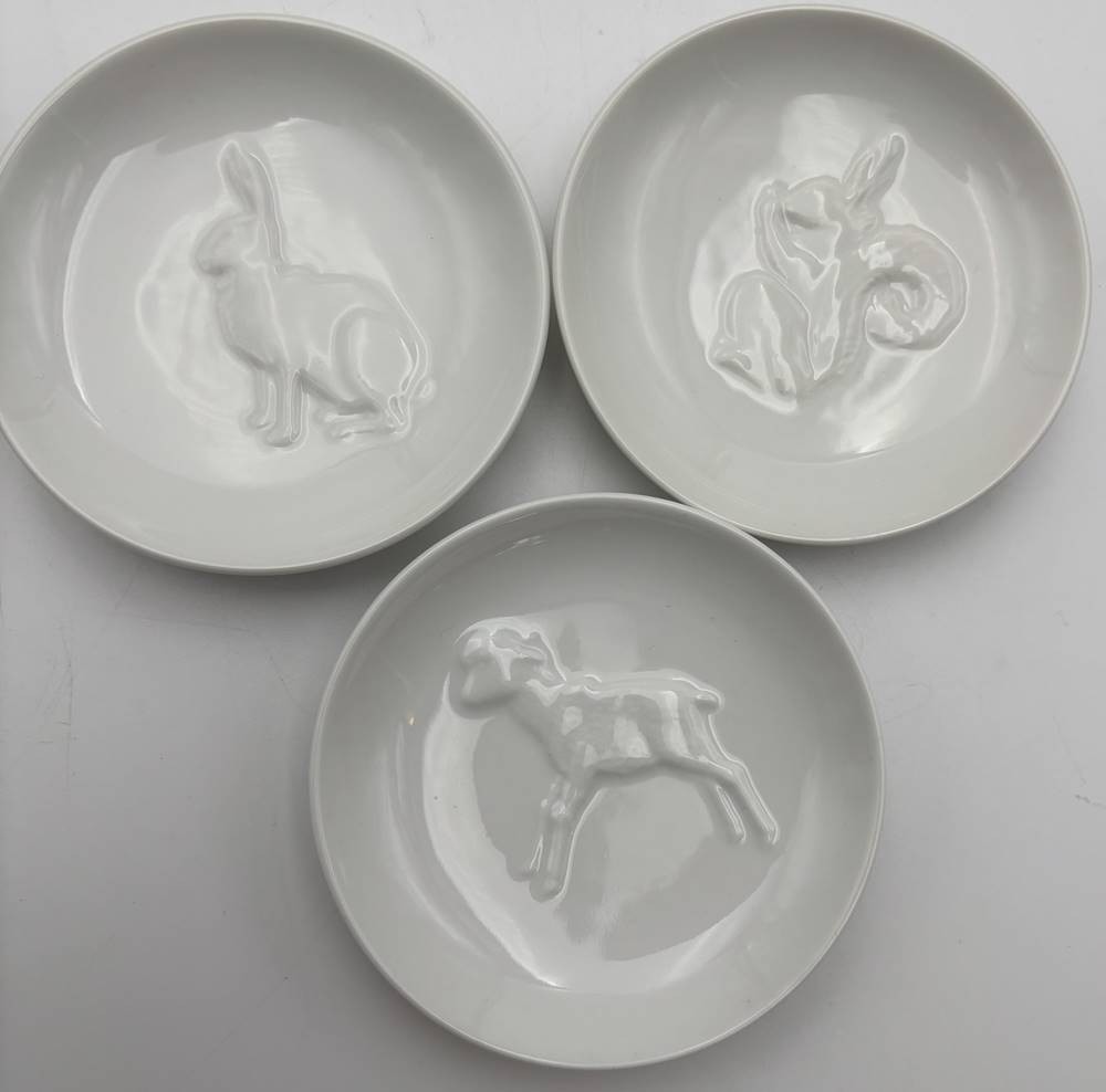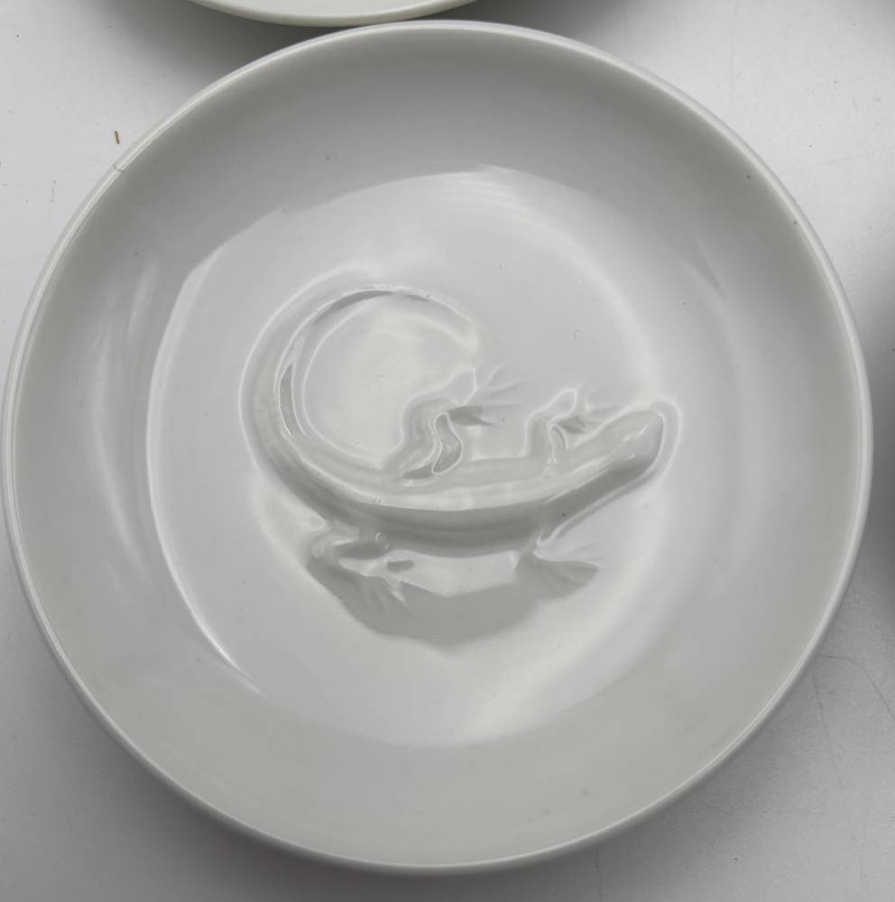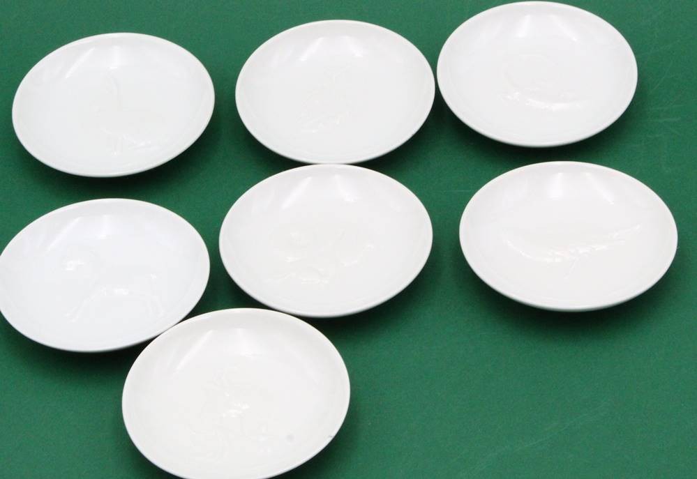 7x kl. Schälchen mit Tierreliefs "KPM" Berlin, blaue Zeptermarke, D-9 cm [1]