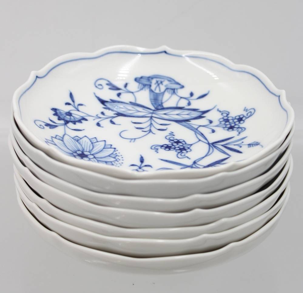 7x Untertassen, Meissen, Zwiebelmuster, je 1. Wahl, 5x D-14,2cm, 1x D-14cm [1]