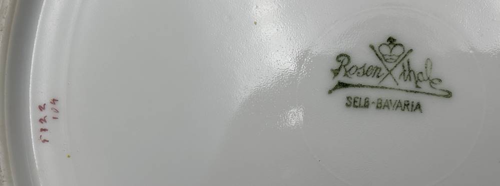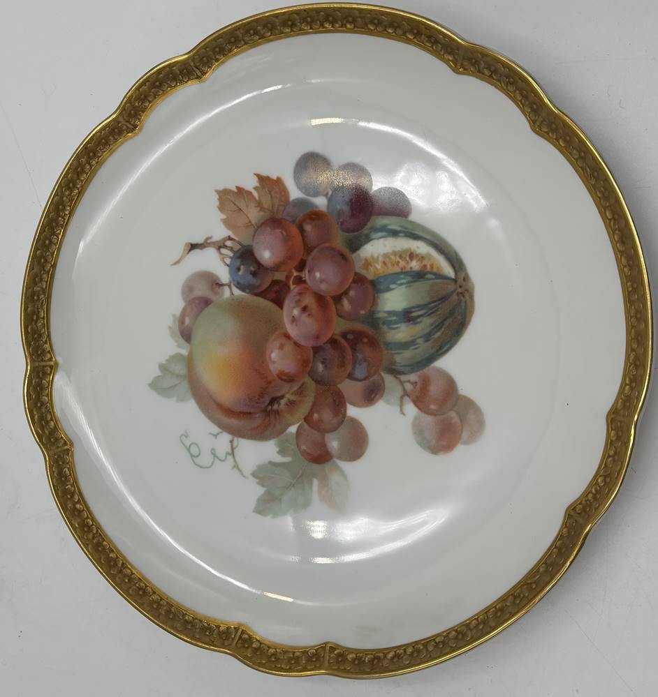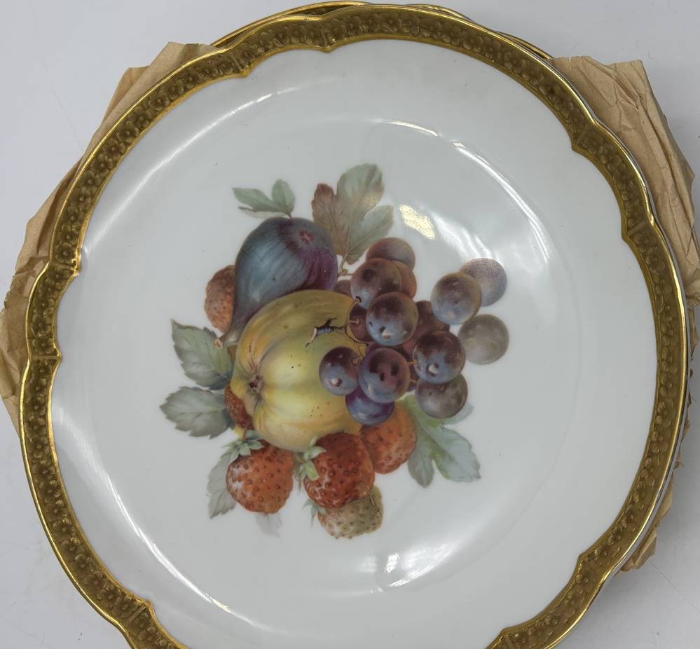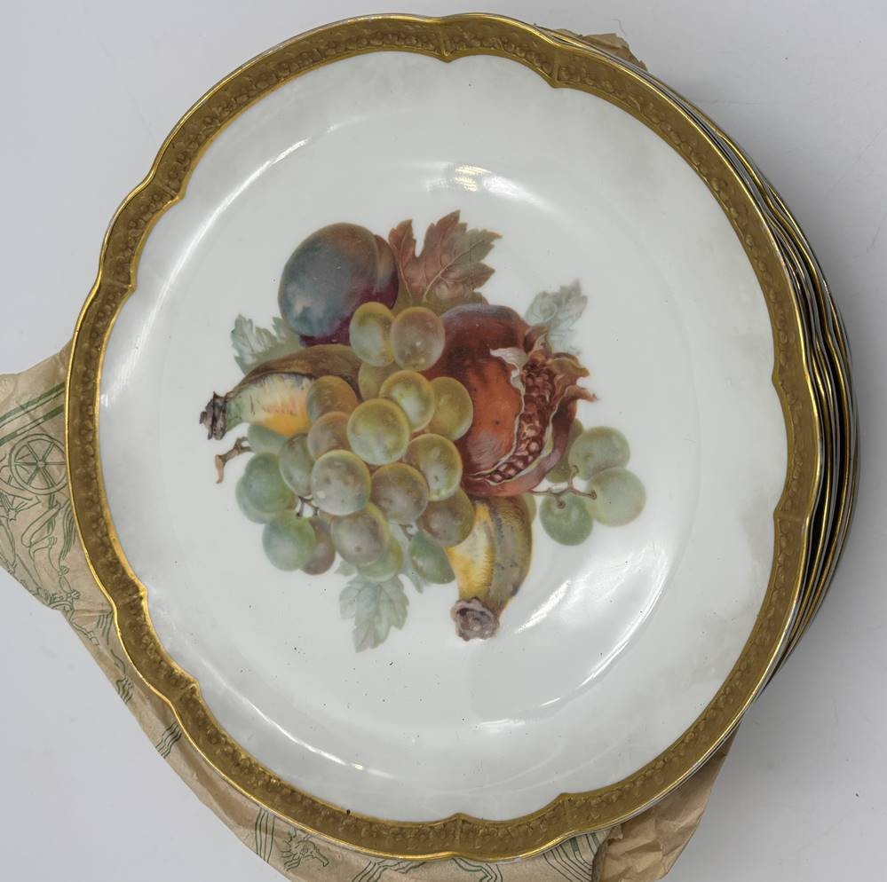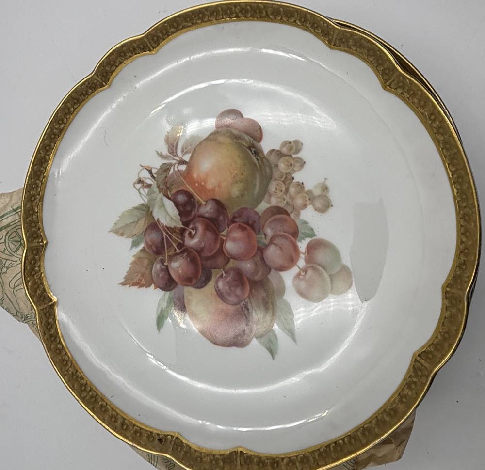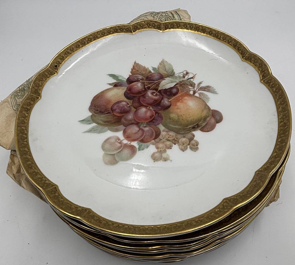 8x gr. Obstteller "Rosenthal, mit Ätzgoldrand und 4 verschiedenen Motiven, D-22 cm, gut erhalten, um 1920 [1]