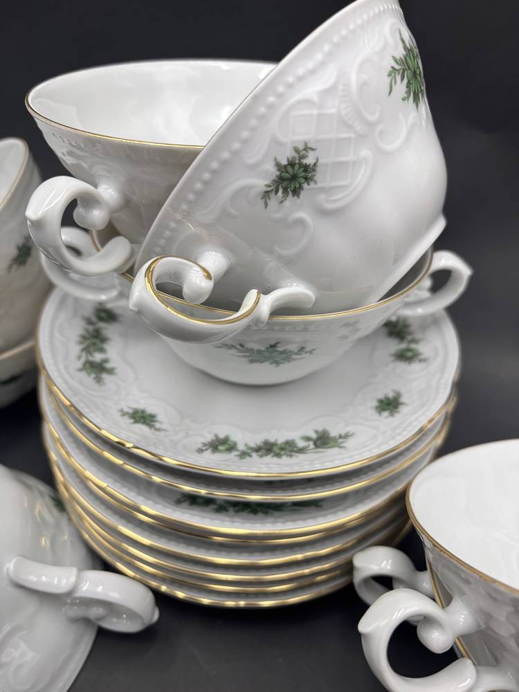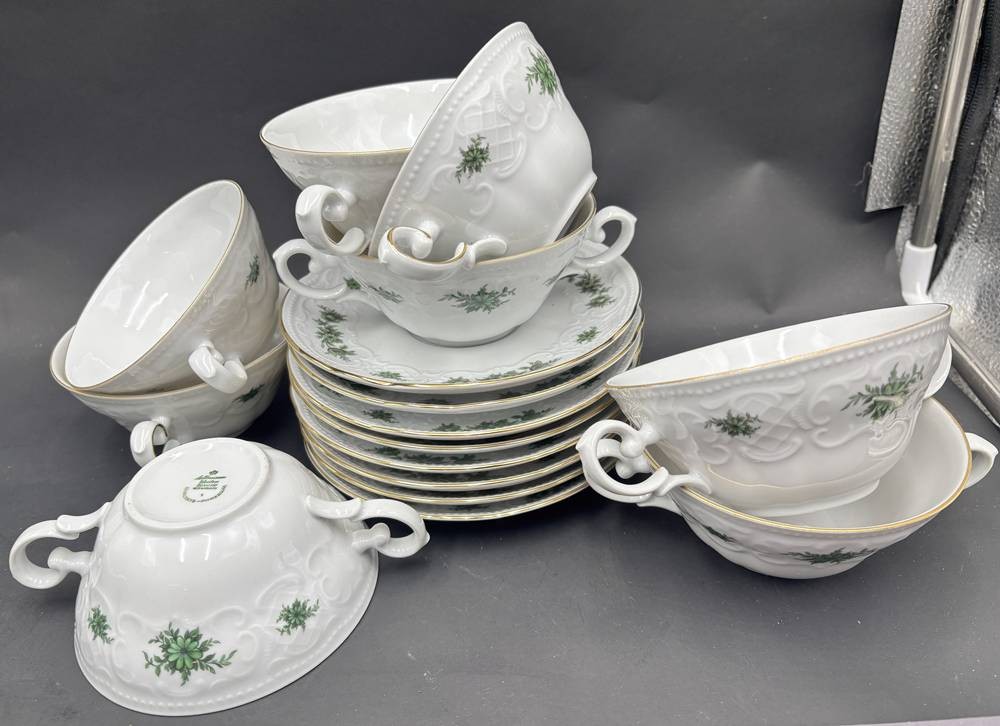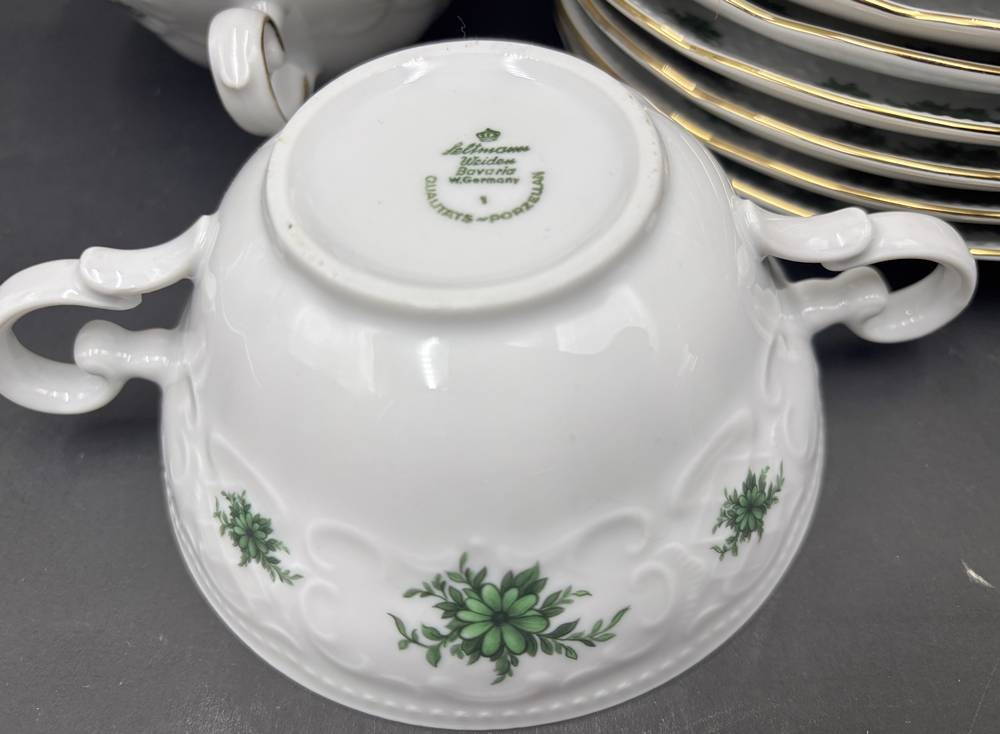 8x Suppentassen mit U.T. "Seltmann Weiden", grünes florales Dekor [1]