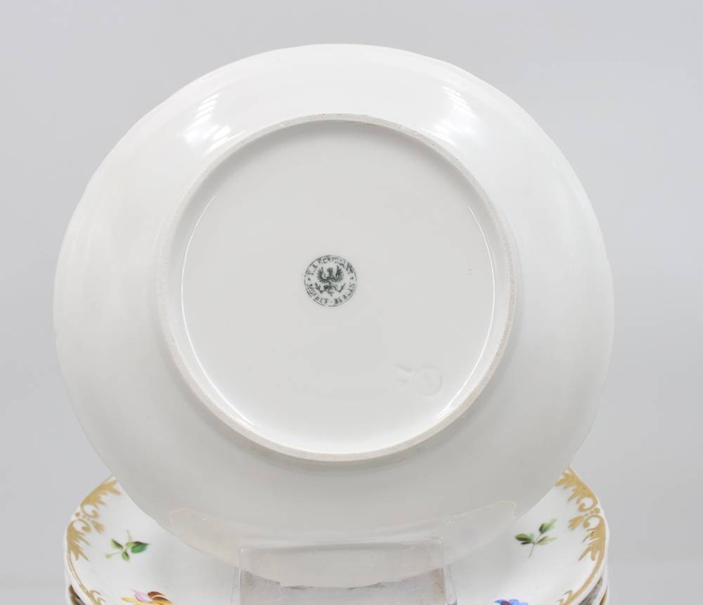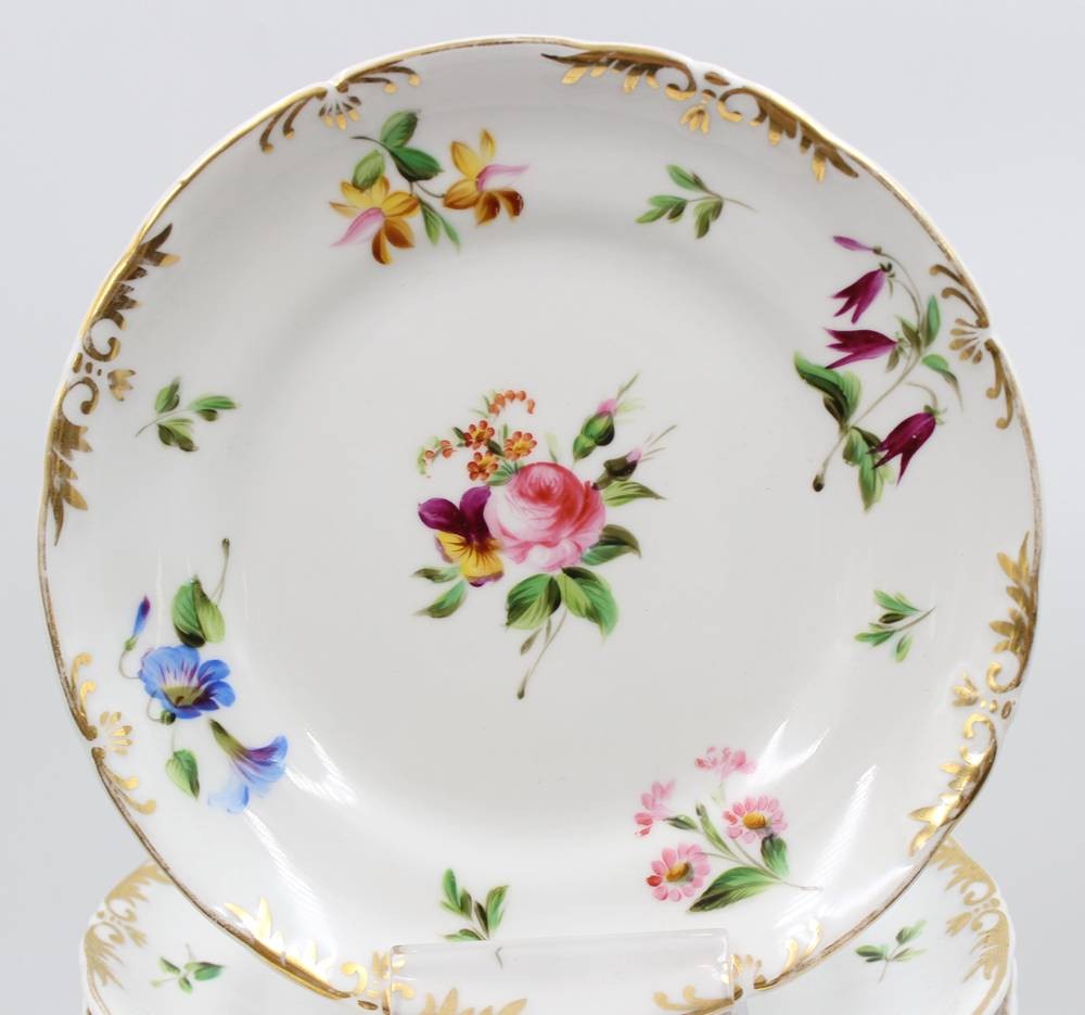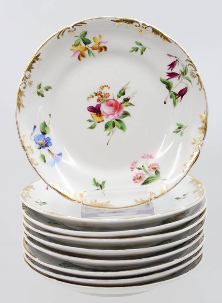9x Kuchenteller, Moabit, 19. Jhd., florale Bemalung, je D-18,5cm [1]
