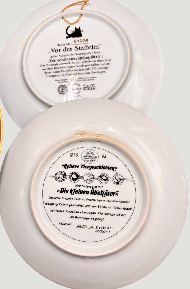 9x Wand-Sammelteller mit Bradex Nummer, alle mit Katzenmotiven, verschiedene Serien, limitierte Auflagen
