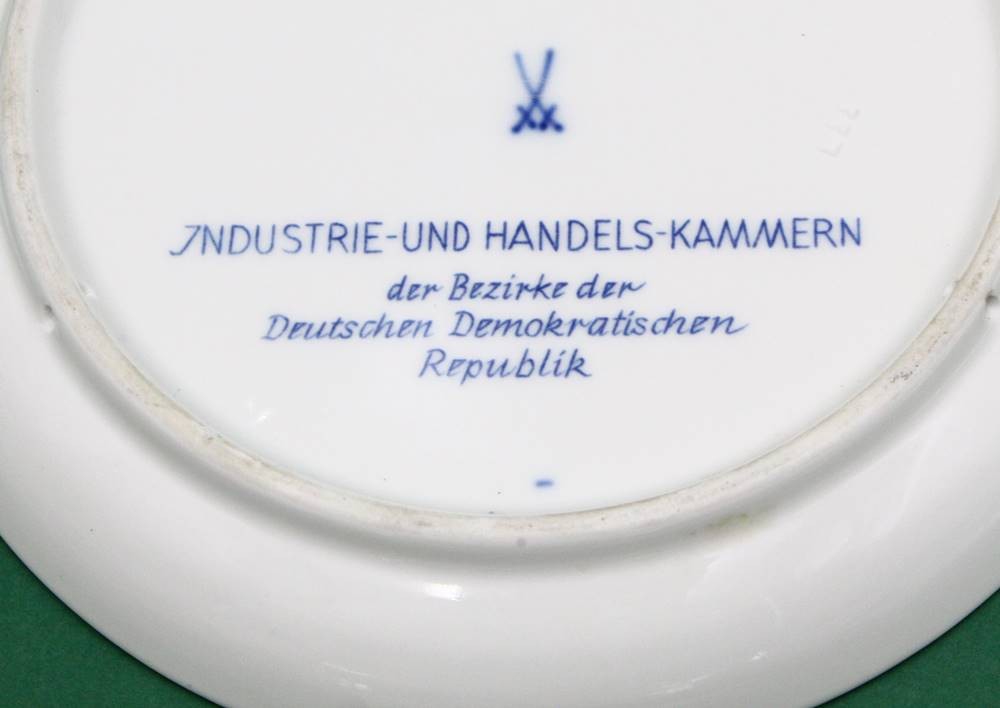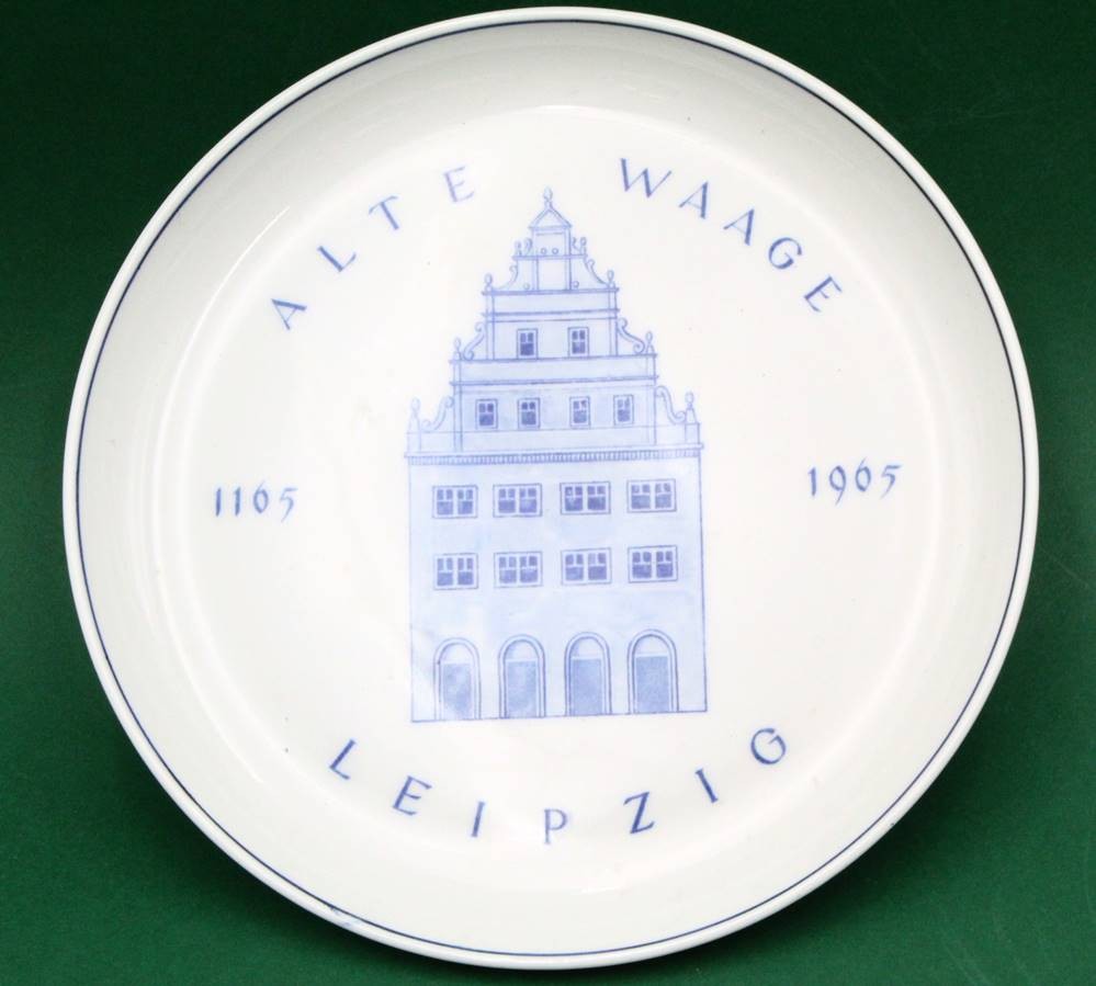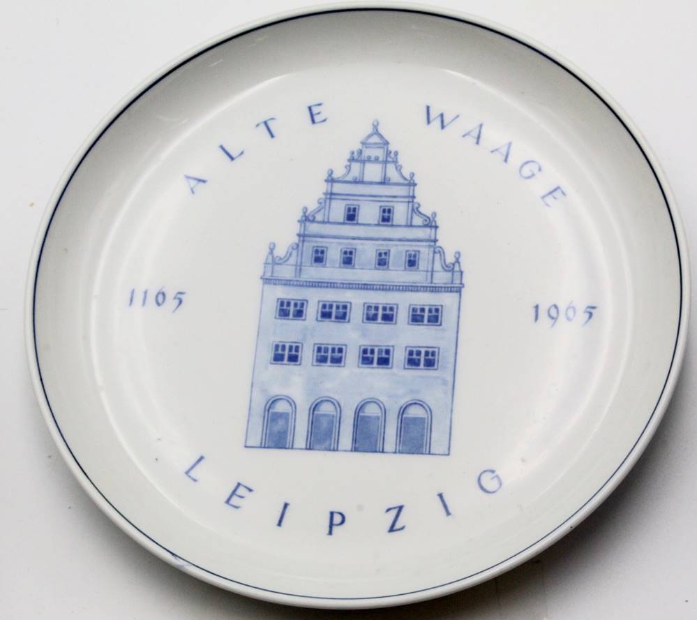 Ansichtenteller "Meissen" Aquatinta, Alte Waage in Leipzig, von den Handelskammern der DDR, 2.Wahl, D-17 cm