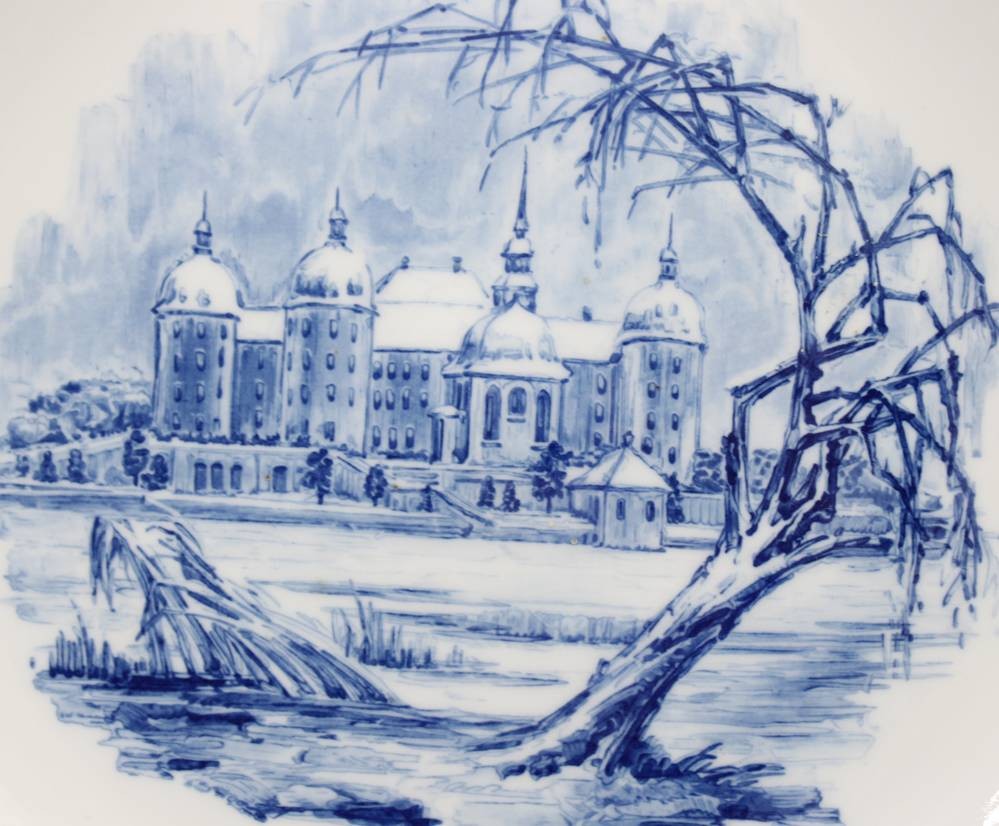 Ansichtenteller, Meissen, Schwertermarke, 1. Wahl, Schloß Schwerin, 1971, D-26,3cm