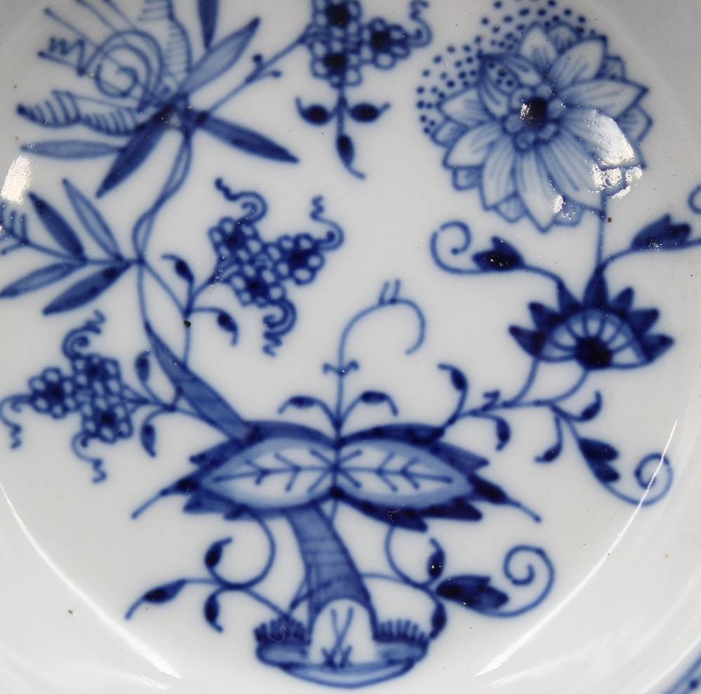 Ascher, Meissen, Zwiebelmuster, 2 Schleifstriche, ca. H-2,3cm D-12,3cm