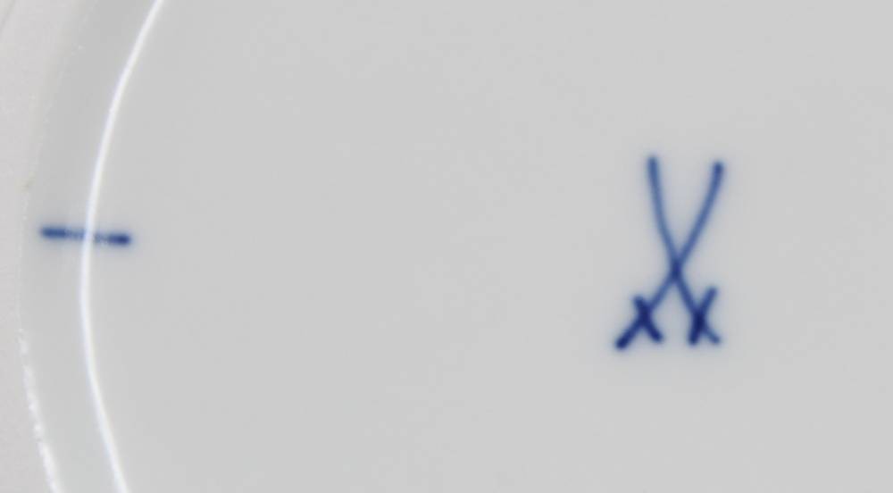 Ascher, Meissen, Zwiebelmuster, 2 Schleifstriche, ca. H-2,3cm D-12,3cm [1]
