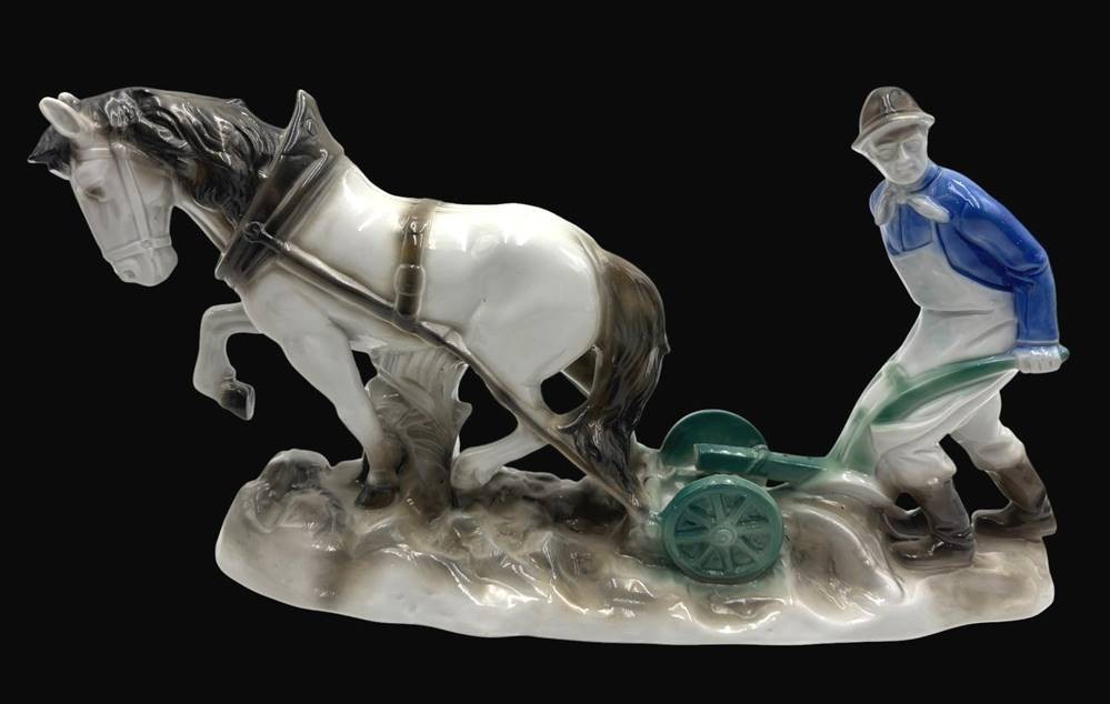 Bauer beim Pflügen, Wallendorf, sign. Wachsmuth (Schaubach Kunst Etikett), H-16 cm, L-28 cm [1]