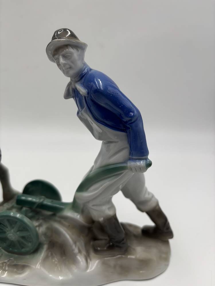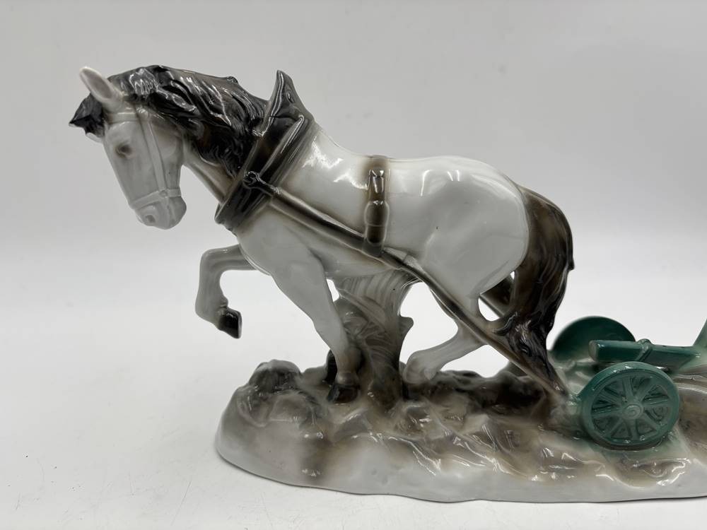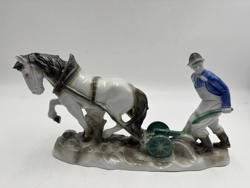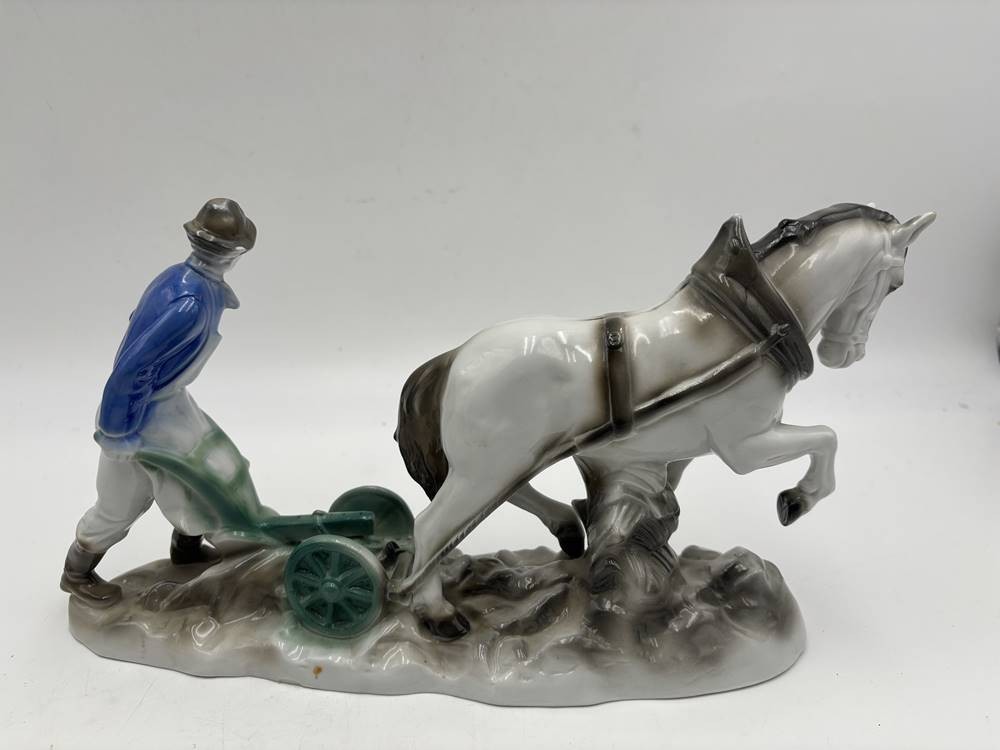 Bauer beim Pflügen, Wallendorf, sign. Wachsmuth (Schaubach Kunst Etikett), H-16 cm, L-28 cm