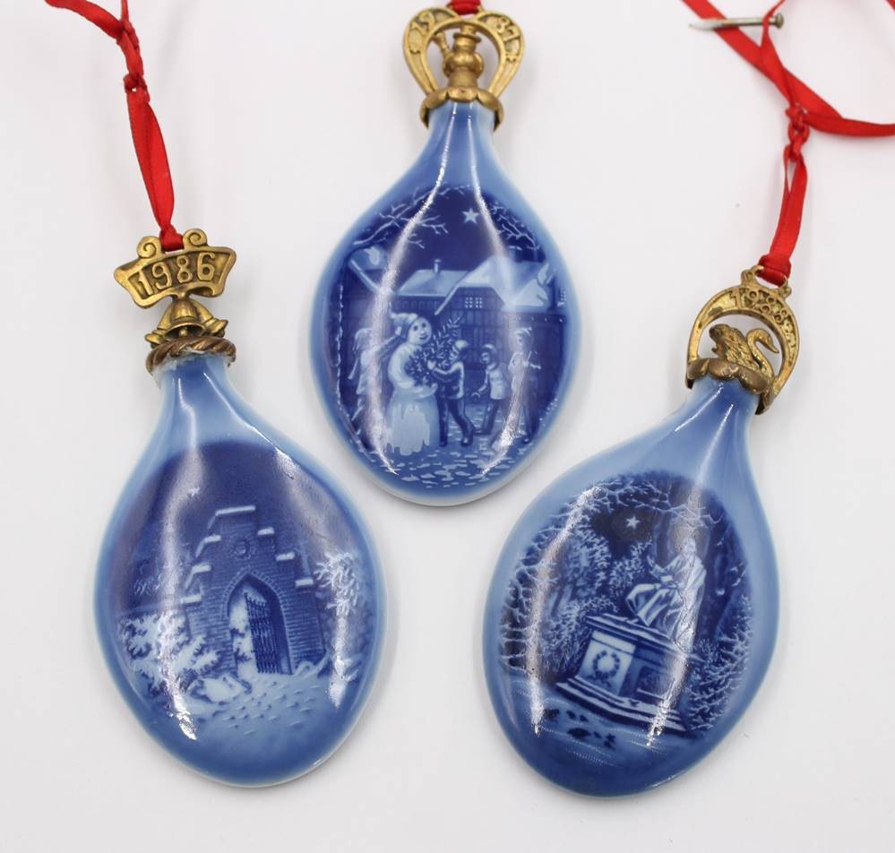 Bing & Grøndahl Weihnachtstropfen, 1986, 87 und 88, 1986 mit Klebereste?, ca. L-9cm [1]
