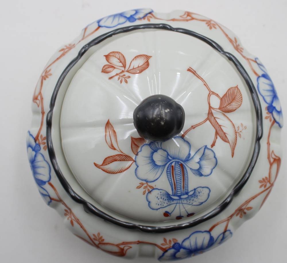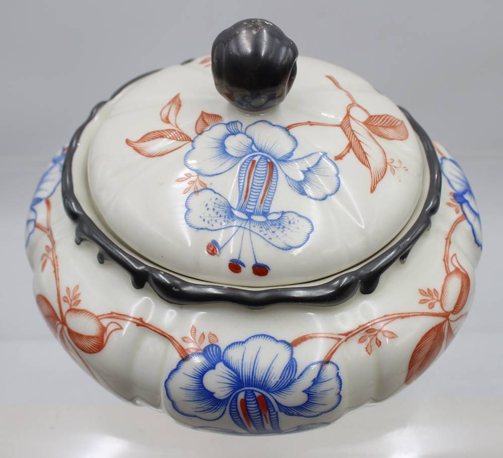 Bonboniere, Mitterteich, 30er Jahre, florales Dekor und Silberrand, ca. H-13,5cm D-19,5cm [1]