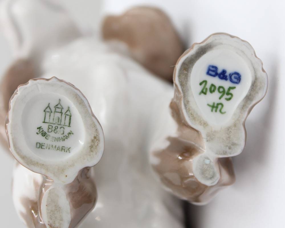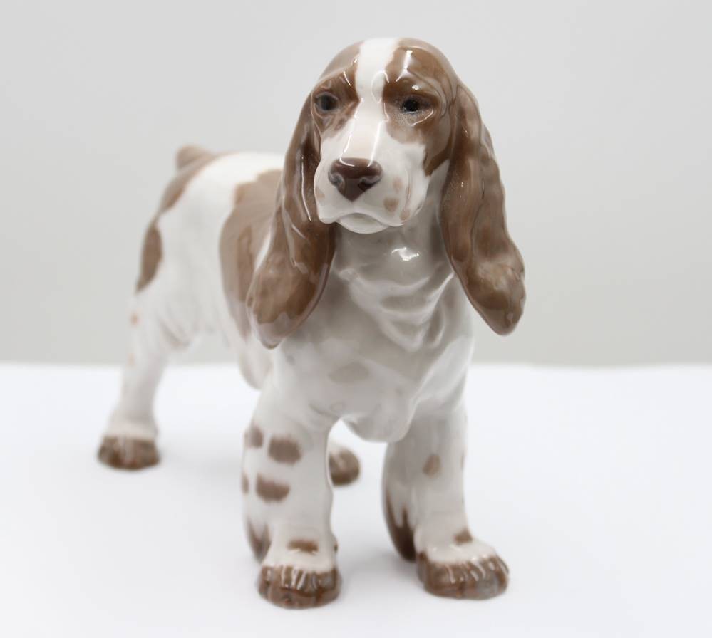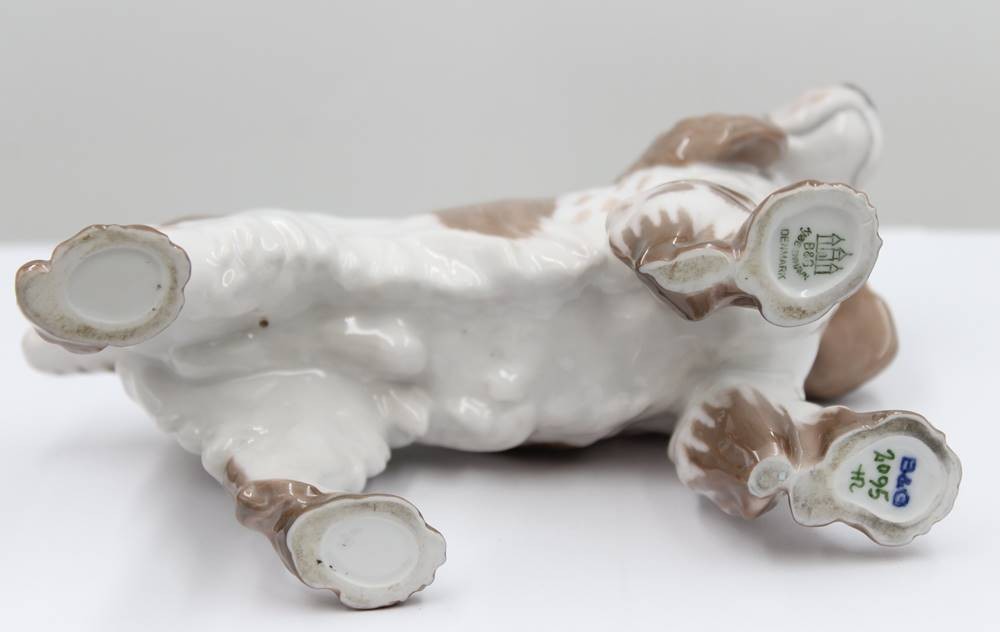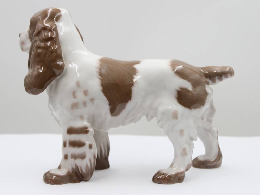Cockerspaniel, Bing & Gröndahl, Modellnr. 2095, Entwurf Laurits Jensen, naturalistisch staffiert in Unterglasurfarben, ca. H-16,5cm, L-20,5cm [1]