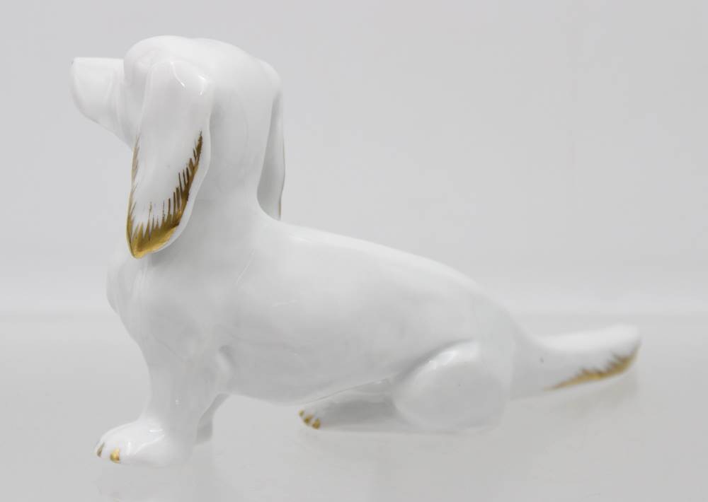Dackelfigur, Günthersfeld, Goldstaffage, wohl Art-Déco, H-9cm L-16cm [1]