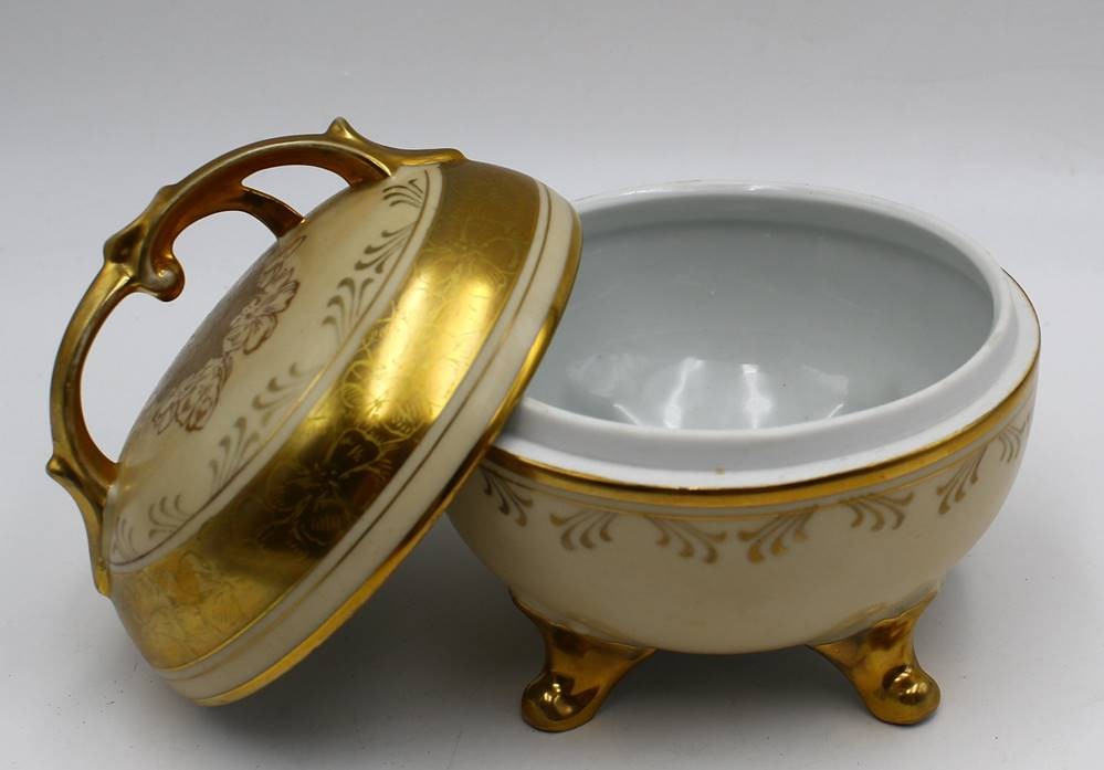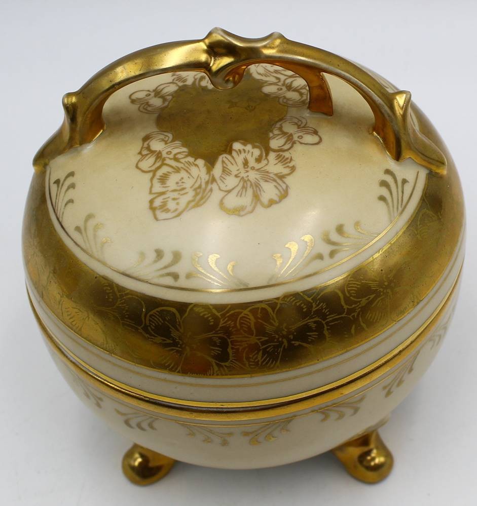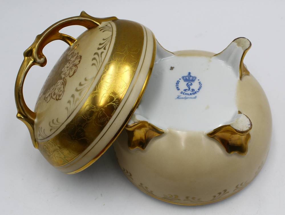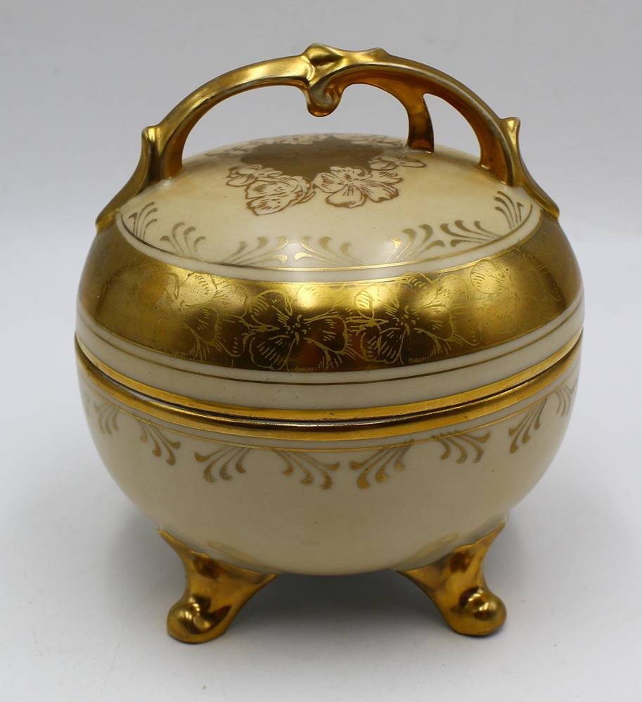 Deckeldose "Lindner" mit Goldstaffage, leicht berieben, H-13 cm, D-13 cm [1]