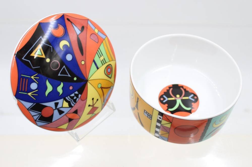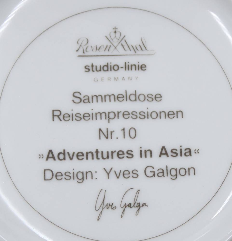Deckeldose, Rosenthal studio-linie, Adventures in Asia, Nr 10, Design Yves Galgon, Deckel bestossen, ca. H-6,2cm D-10cm