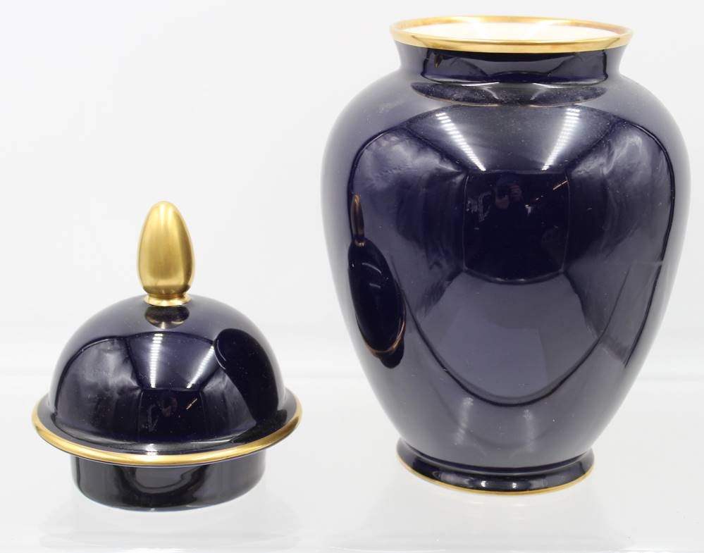 Deckelvase, Lindner, Kobalt mit Goldblumen, ca. H-29,5cm [1]