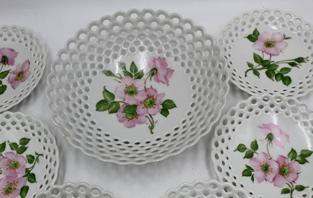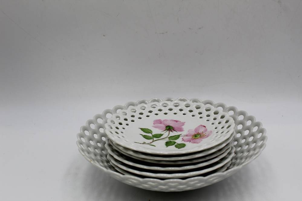 Durchbruchschale mit 6 Schälchen "Wallendorf" Handmalerei, signiert, D-19 und 13 cm [1]