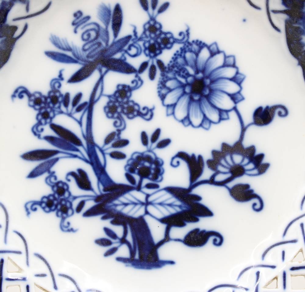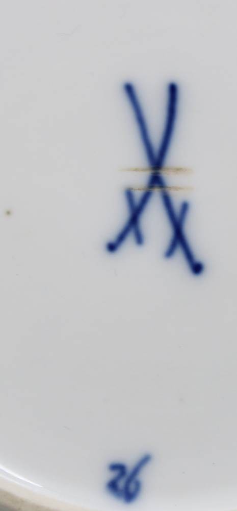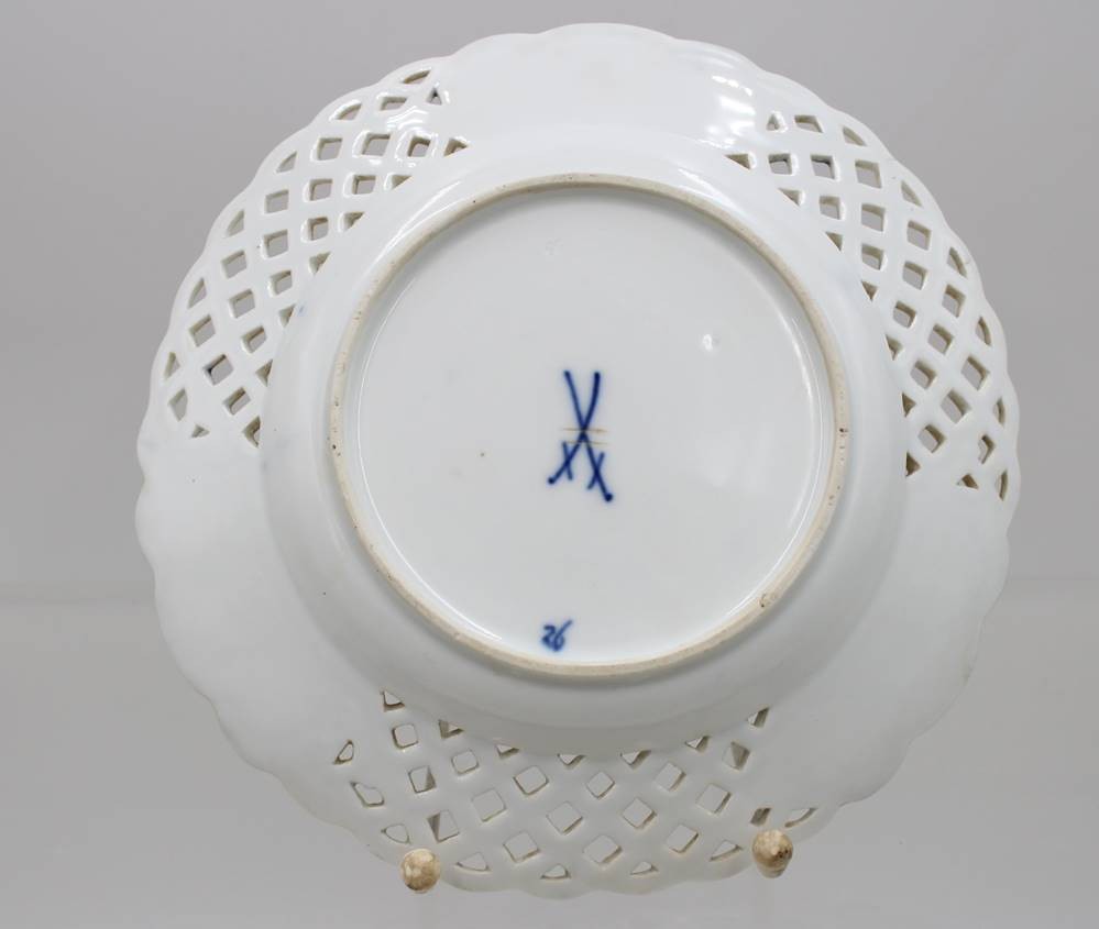 Durchbruchteller, Meissen, Schwertermarke, Zwiebelmuster, 2 Schleifstriche, älter, D-20,3cm [1]
