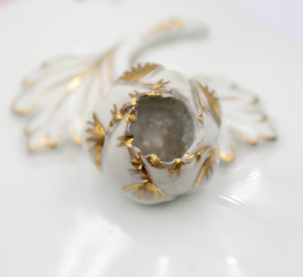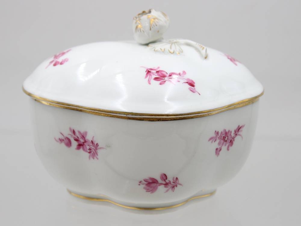 Eine Meissen Deckeldose mit Purpur Blumen und Rose als Deckel bekrönung . [1]