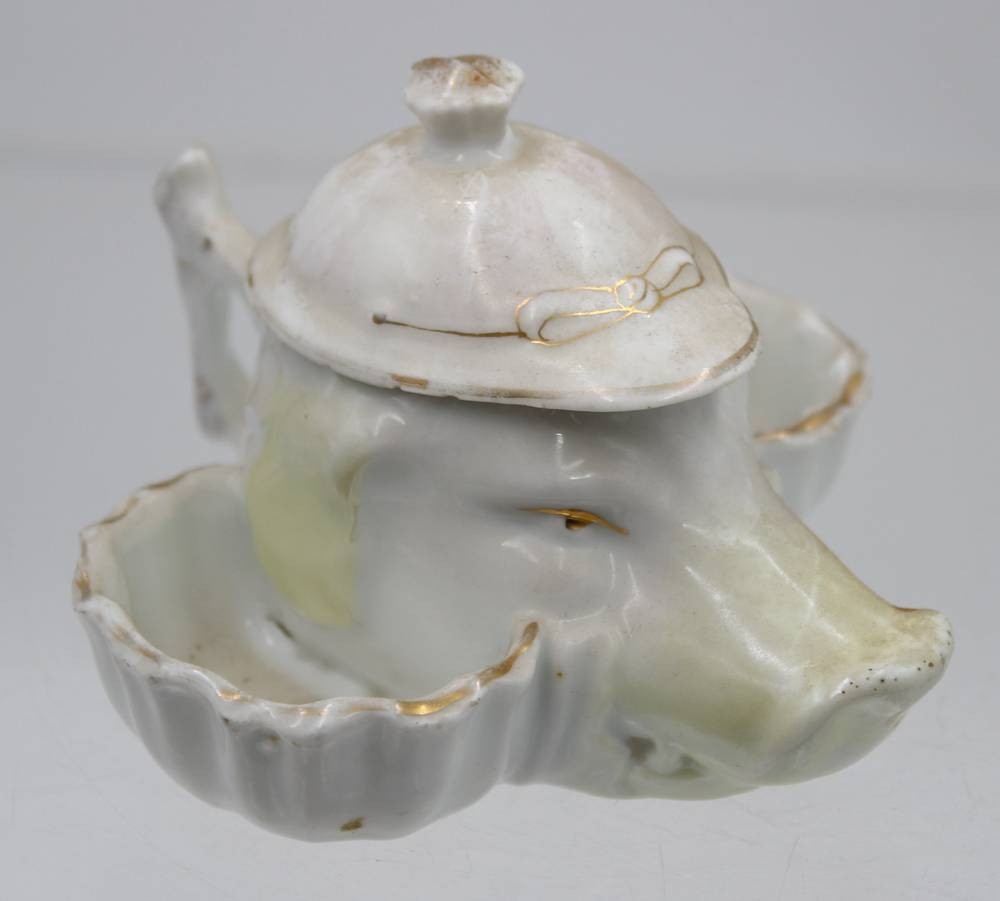 figürliche Menage um 1900, berieben, Alters-u. Gebrauchsspuren, div. kl. Chips, H-7,5cm L-11cm [1]