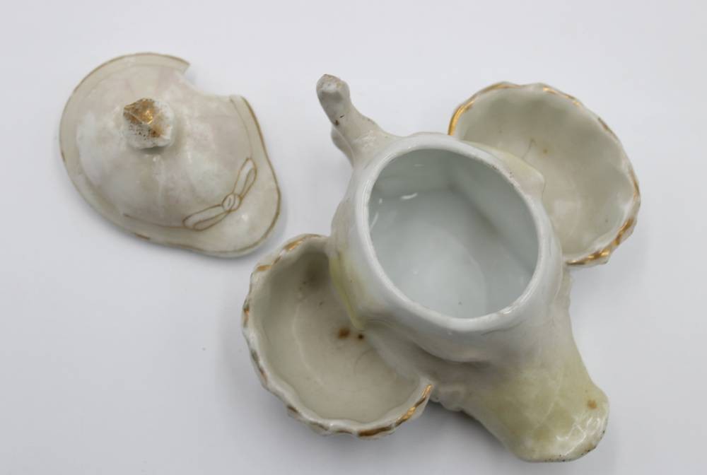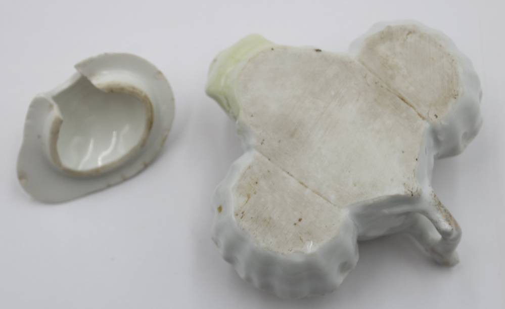 figürliche Menage um 1900, berieben, Alters-u. Gebrauchsspuren, div. kl. Chips, H-7,5cm L-11cm