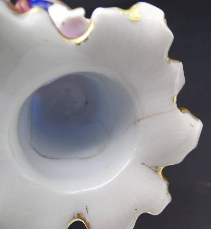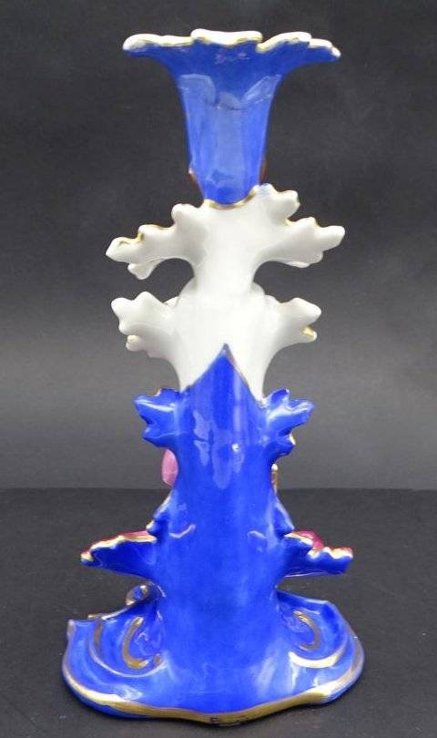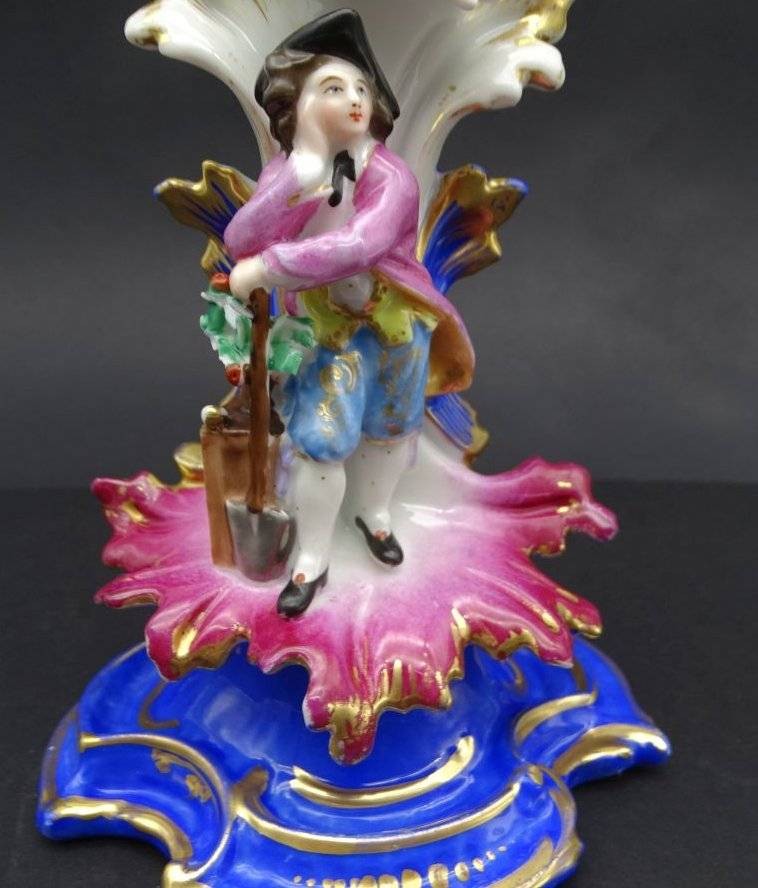 figürlicher Biedermeier Leuchter, Tülle altrissig, Blüten bestossen, H-24 cm, Pressmarke "PE" [1]