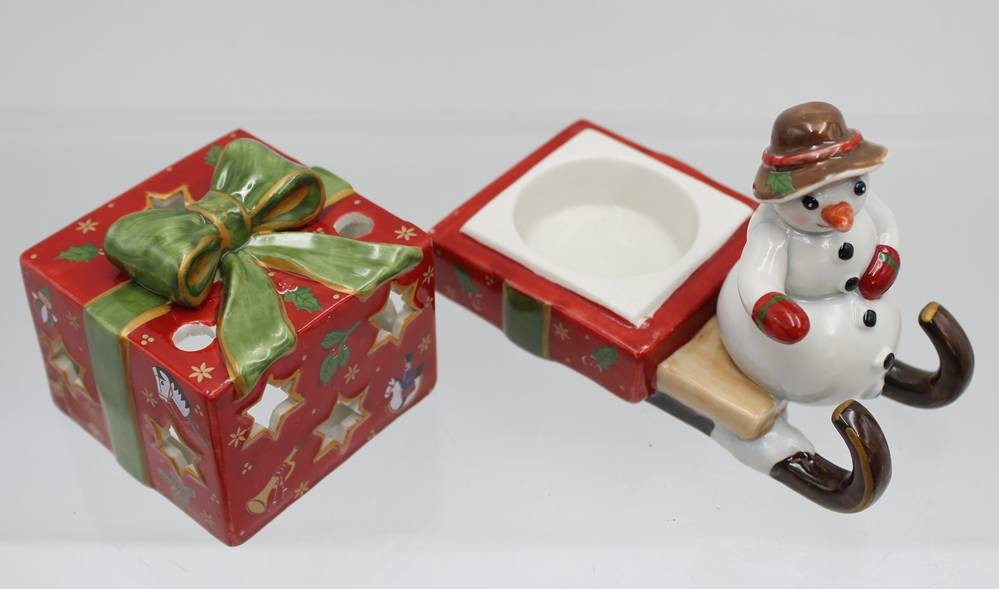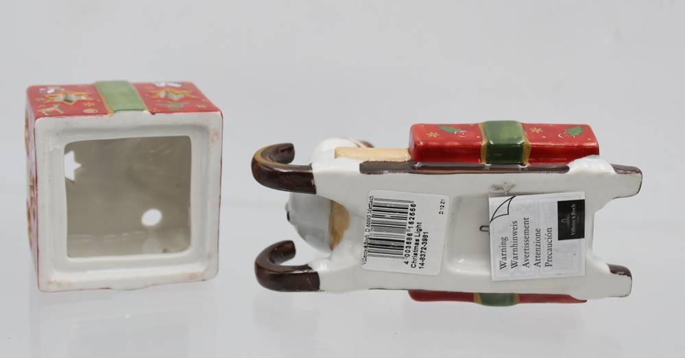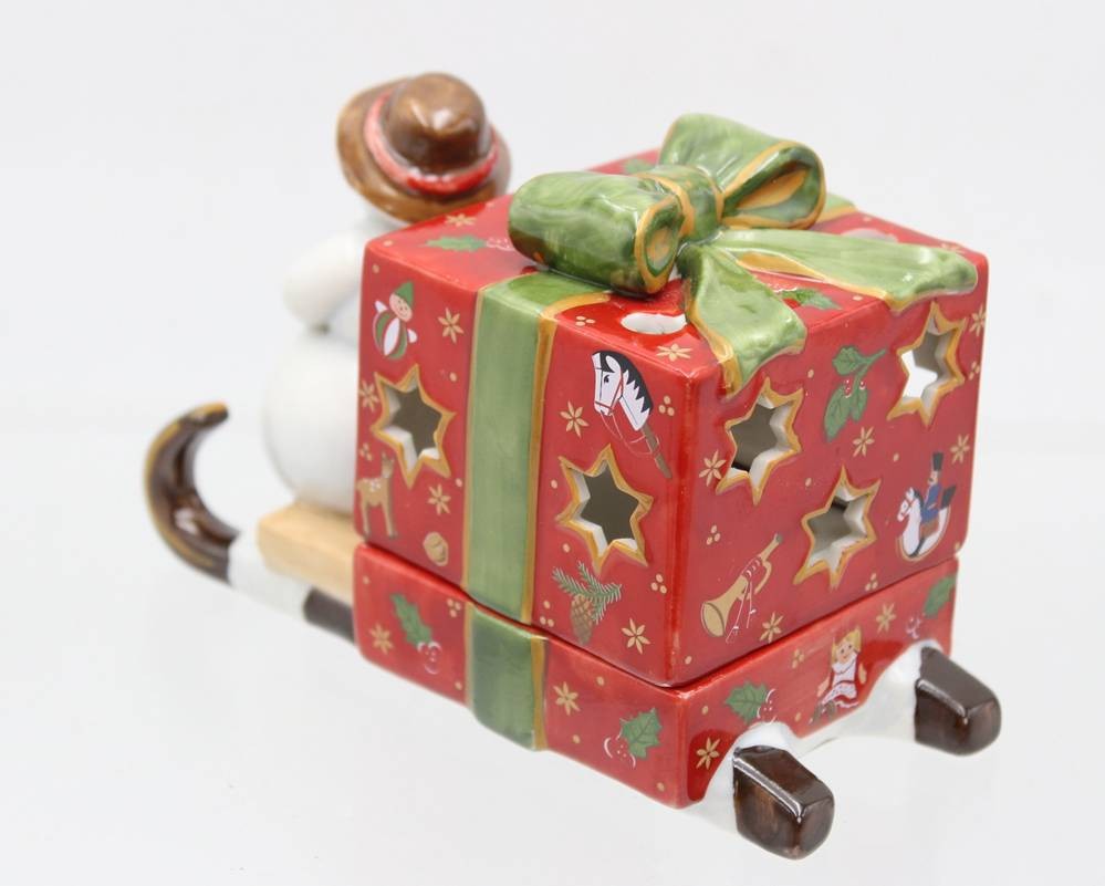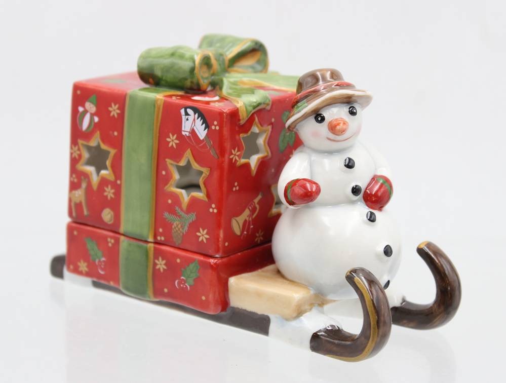 figürlicher Teelichhalter, Villeroy & Boch, Schneemann auf Schlitten, ca. H-9cm L-14cm