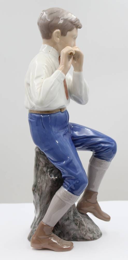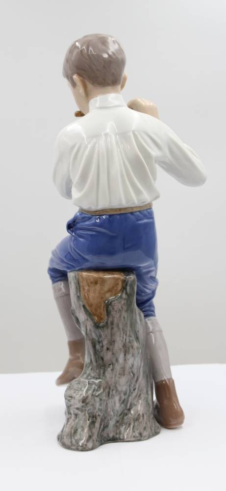 Figur, Bing & Gröndahl, Flötenspieler, Modellnr. 1897, polychr. Bemalung in Unterglasur, H-30cm, ein Schleifstrich [1]