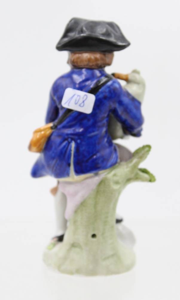 Figur, Sitzendorf, Dudelsackspieler mit Lamm, leider beschädigt, ca. H-11cm [1]
