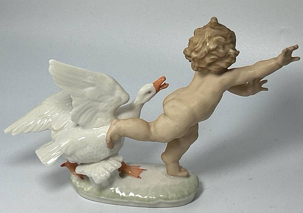 Figur "Vor Gans fliehender Junge" Hutschenreuther, H-16 cm, L-ca. 25 cm [1]