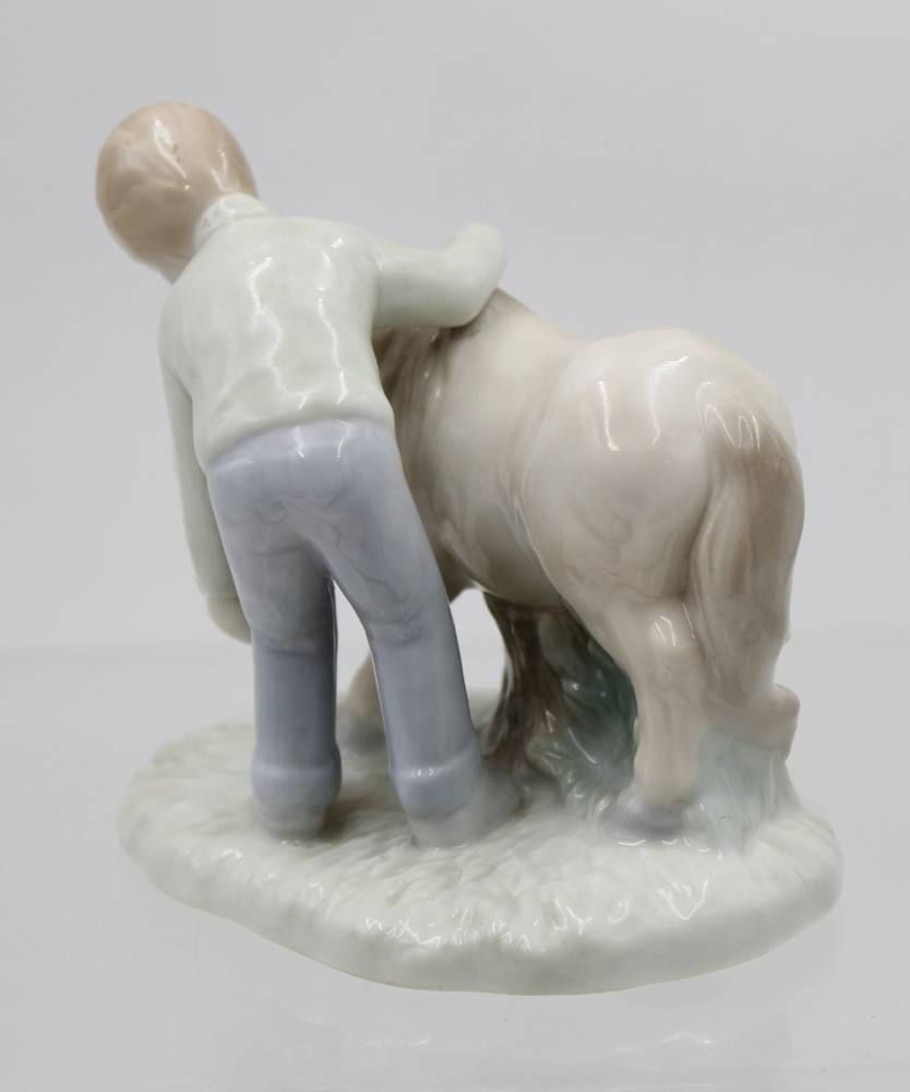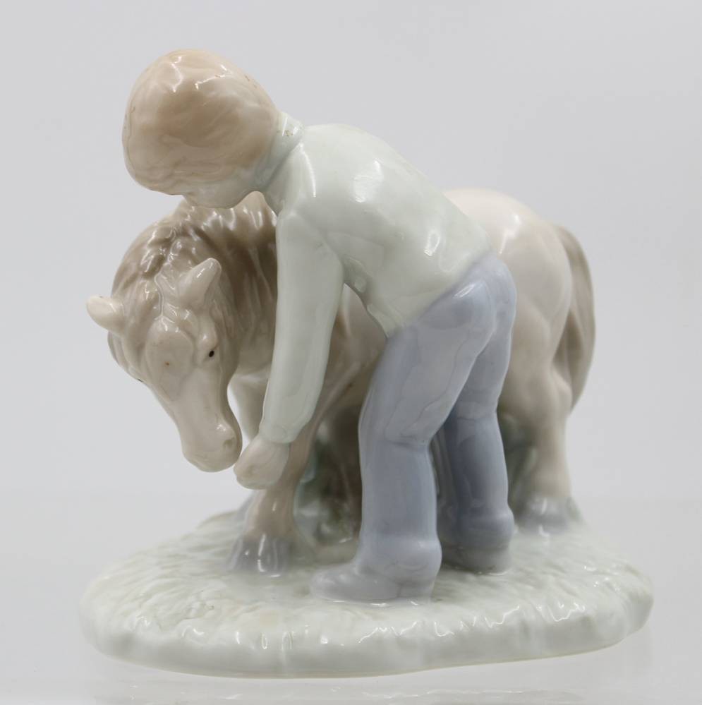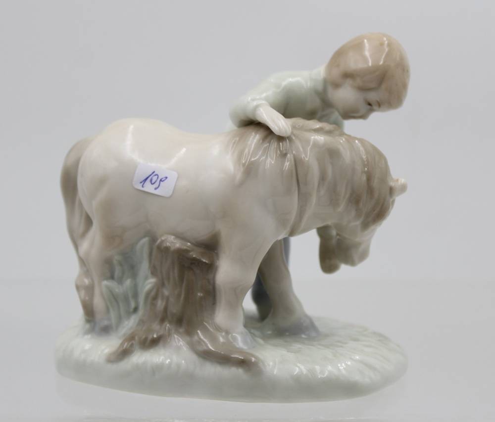 Figurengruppe, Junge mit Pony, ungemarkt, Unterglasurfarben, ca. H-11cm [1]