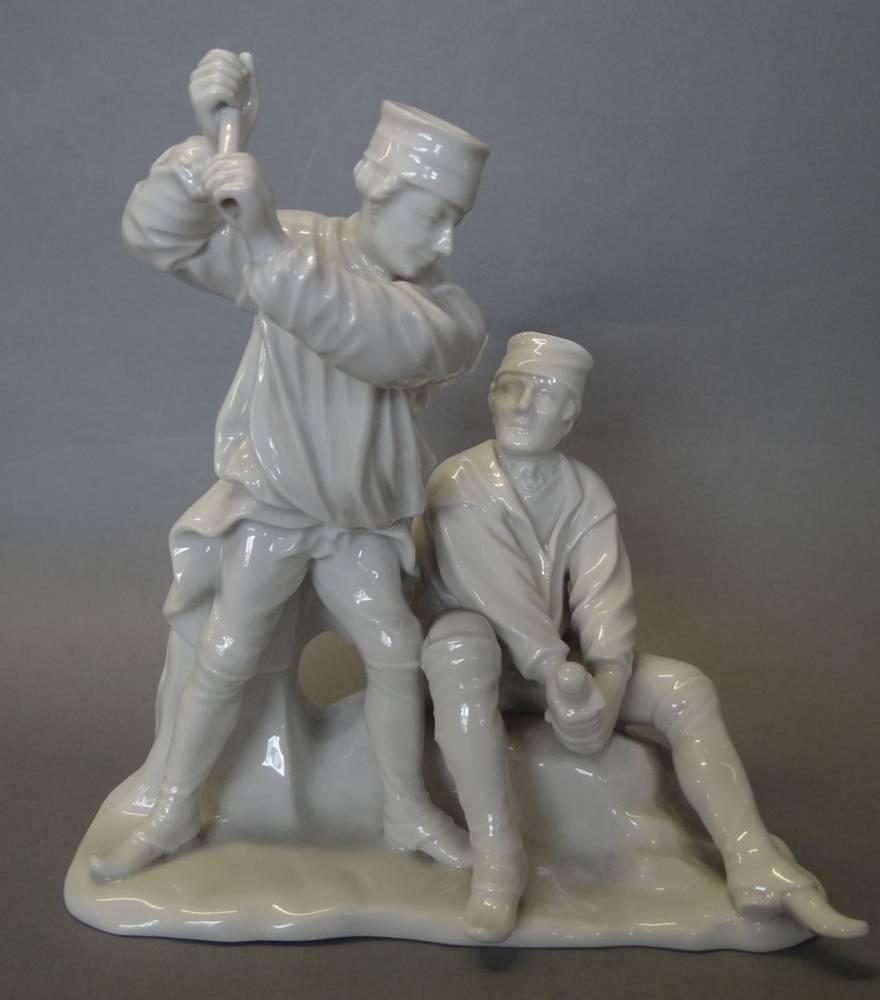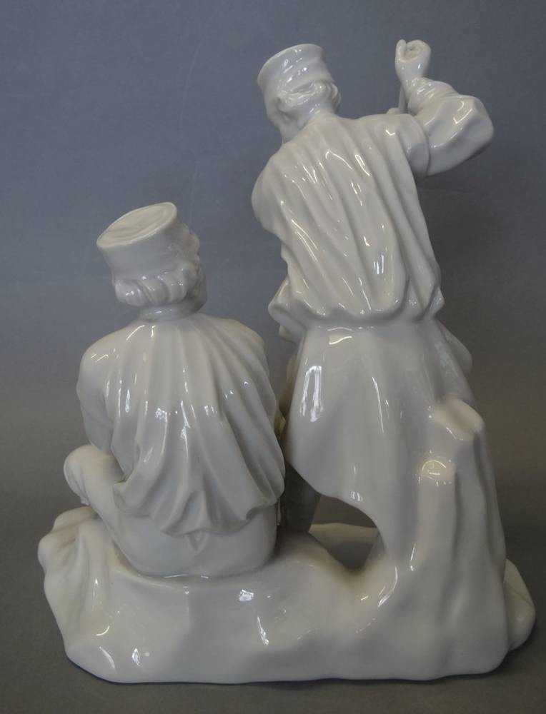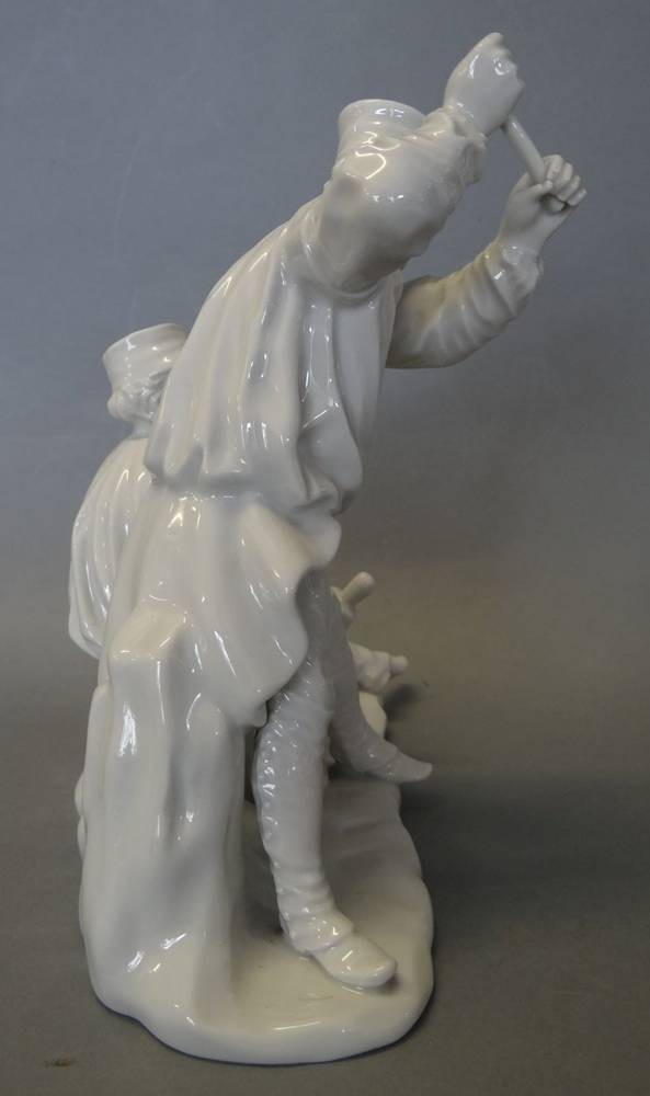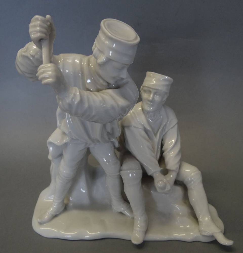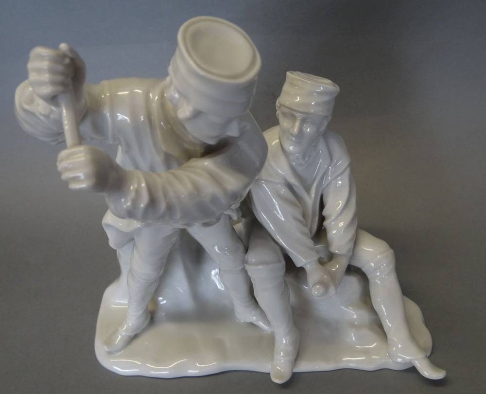 Figurengruppe, zwei Bergmänner "Fürstenberg" weiss, Hammer fehlt, H-20 cm, B-19 cm [1]