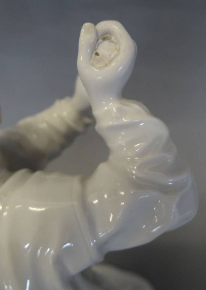 Figurengruppe, zwei Bergmänner "Fürstenberg" weiss, Hammer fehlt, H-20 cm, B-19 cm