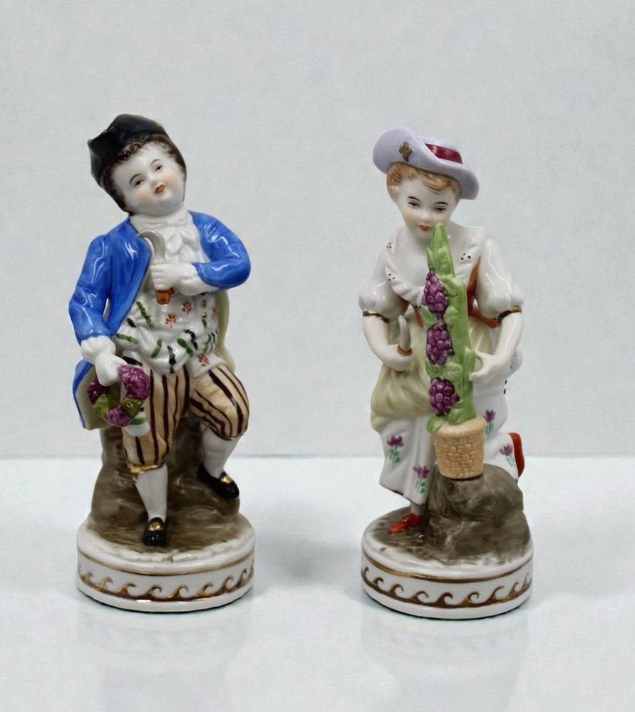 Figurenpaar mit Trauben, Winzerfiguren, bemalt, wohl Sitzendorf, ca. H-16cm [1]
