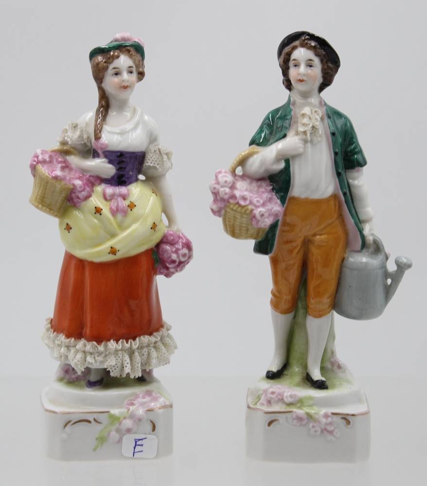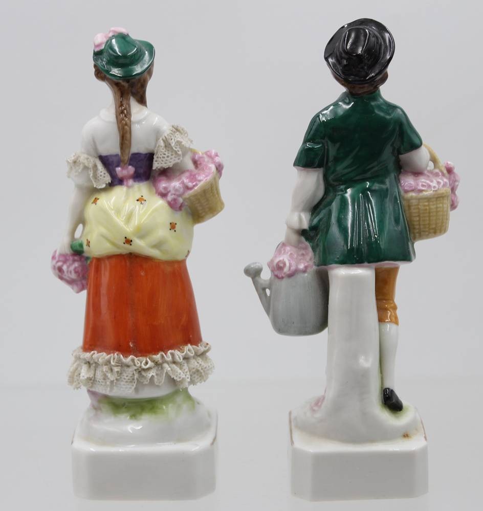 Figurenpaar, Scheibe Alsbach, älter, Gärtnerfiguren, bei Damen die Spitze bestossen, ca. H-14,5cm [1]