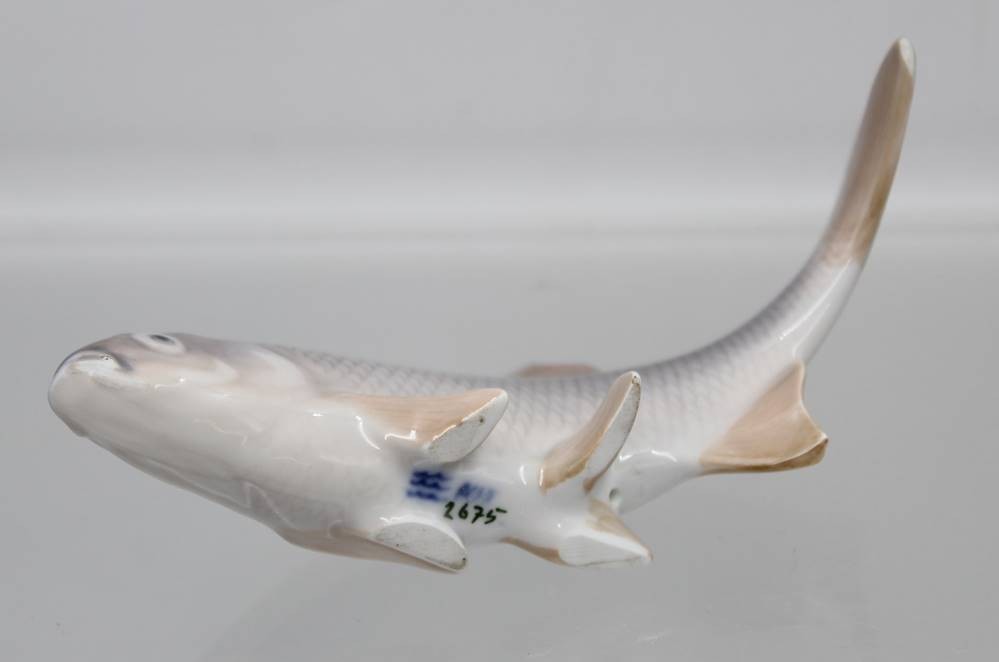 Fisch, Royal Copenhagen, Dänemark, 20. Jhd., Modellnr. 2675, in Unterglasurfarben, H-7,5cm L-16cm [1]