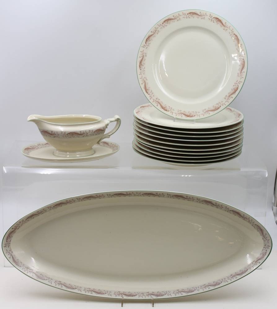 Fischservice, Heinrich, Sauciere, Platte und 11 flache Teller [1]