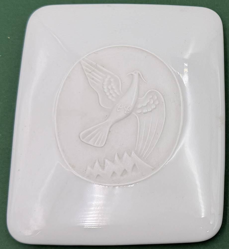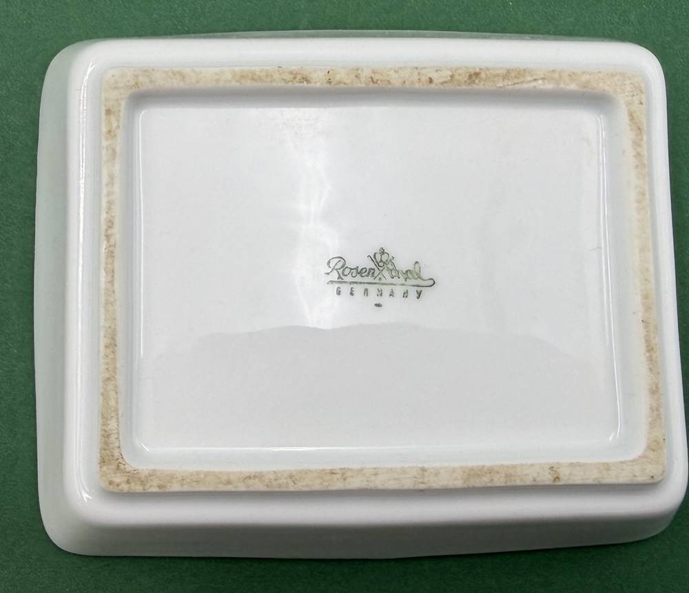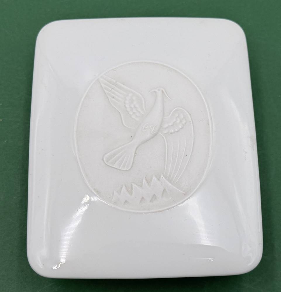 flache Deckeldose (Zigaretten?) "Rosenthal" weiss mit Vogelrelief, H-4,5 cm, 12x10 cm [1]