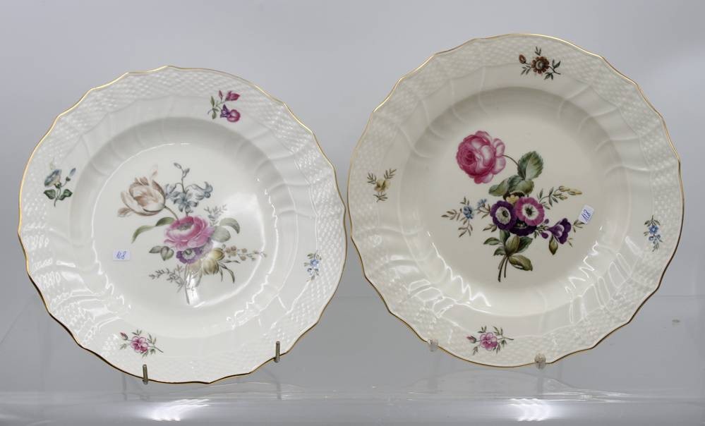 flacher und tiefer Speiseteller, Royal Copenhagen, florale Bemalung, je ca. D-25,5cm [1]