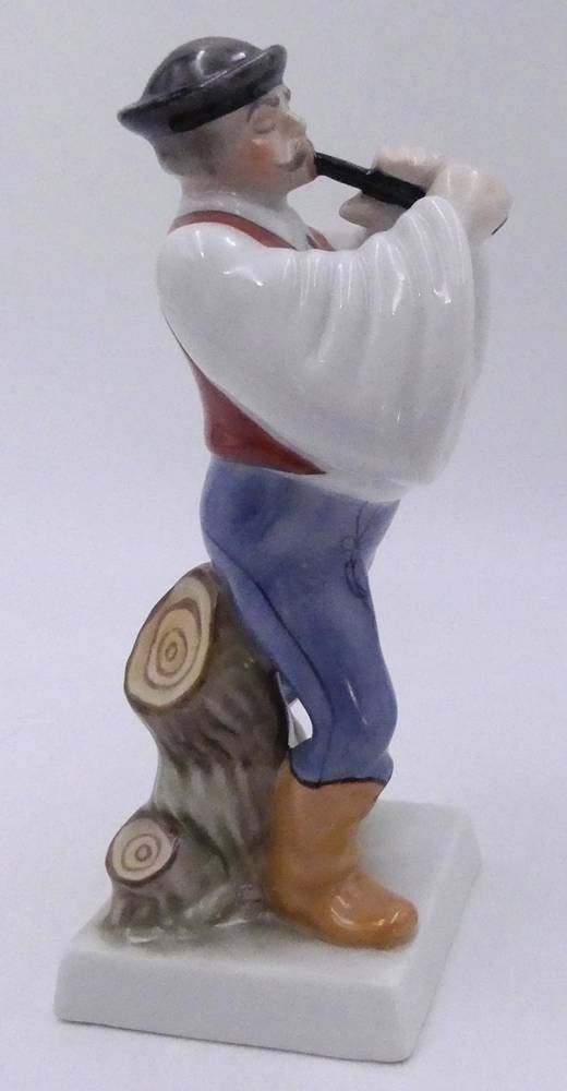 Flötenspieler "Herend" bemalt, H-14 cm, Flötenspitze beschädigt, [1]
