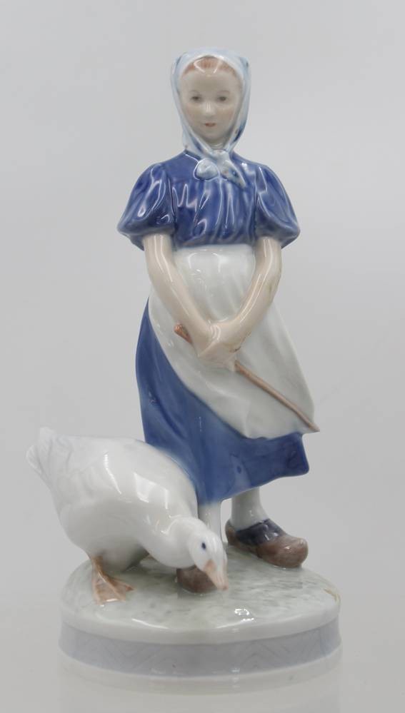 Gänsemagd, Royal Copenhagen, Entw. Christian Thomsen, u. sign., Modellnr. 527, polychrom bemalt in Unterglasurfarben, auf rundem Sockel, H- 23,5 cm [1]