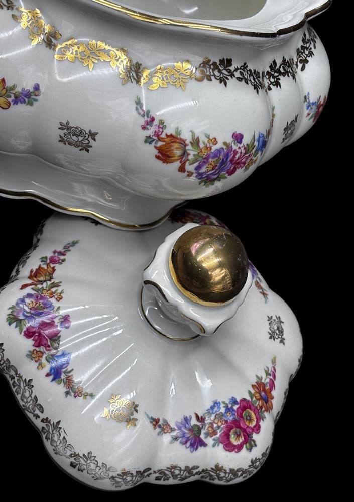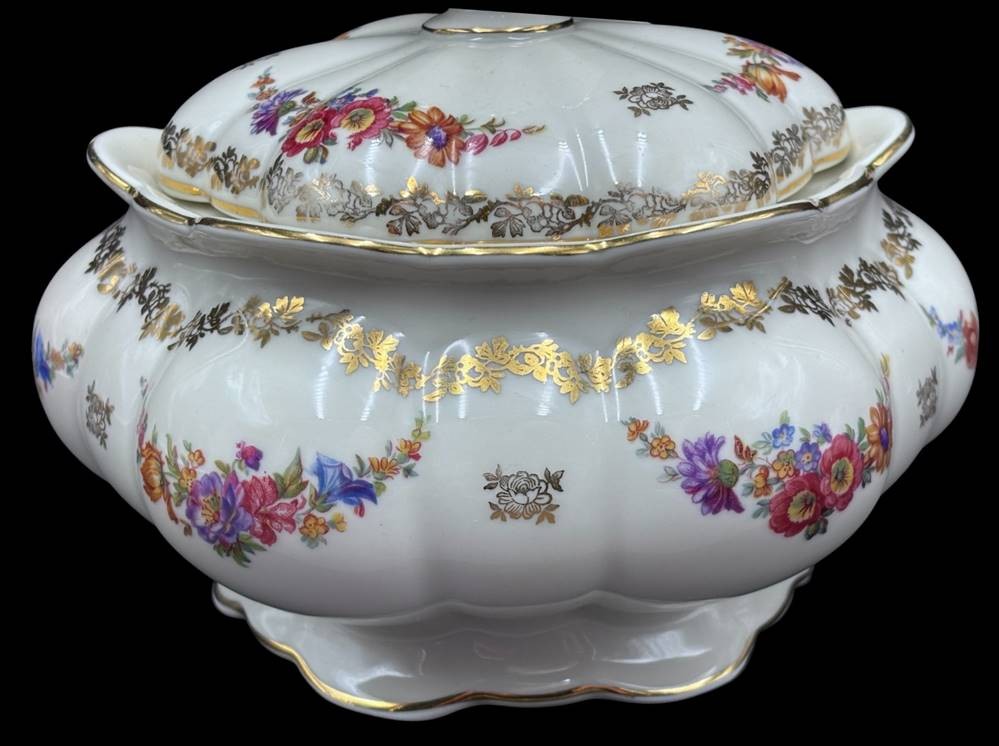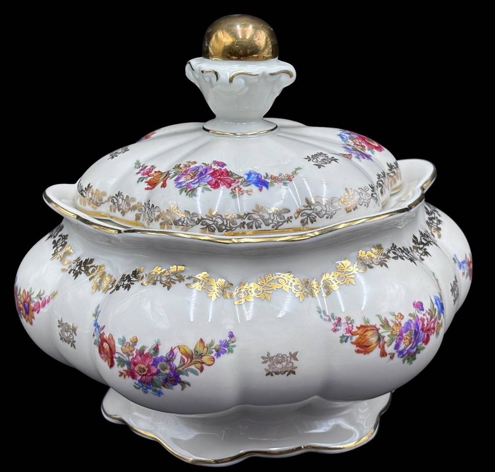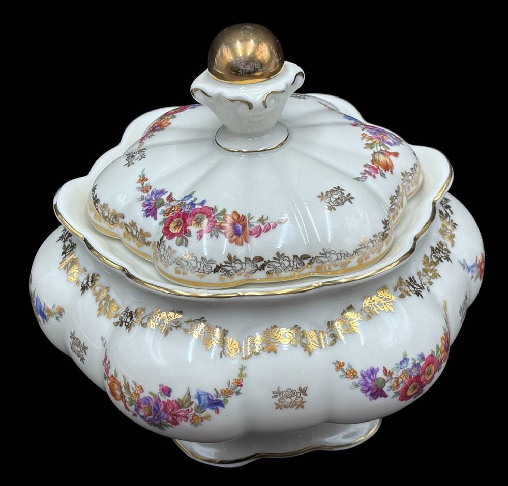 gr. Art Deco Bonbonniere "AL-KA Kunst" Kronach, Blumendekor, H-17 cm, D-18 cm [1]