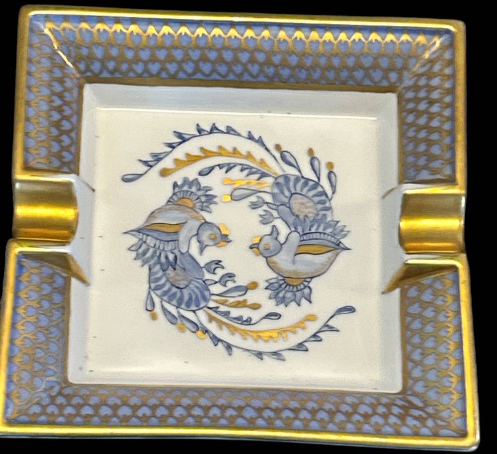 gr. Ascher, "Limoges-France" handgemalt von Helene Gebhardt, 1990, verso mit Widmung, 18x18 cm